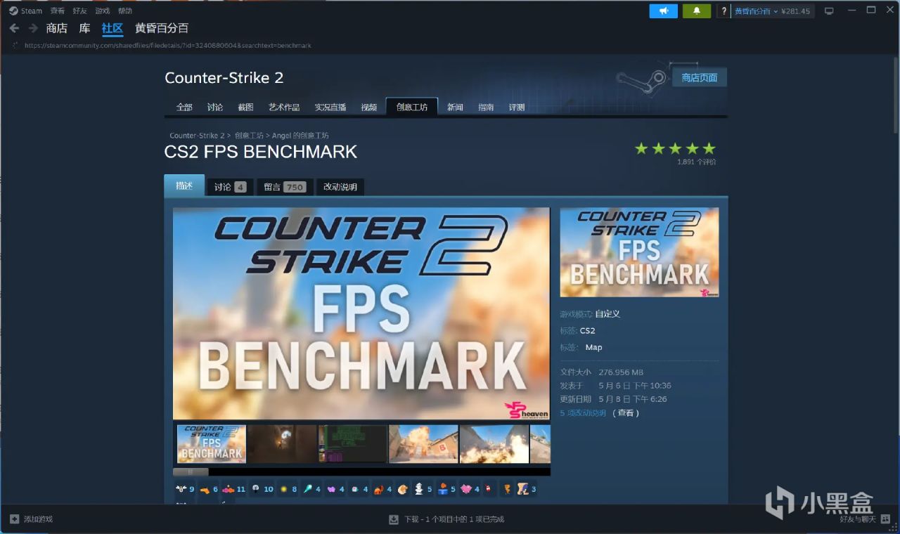 ▲这里为大家安利一下才出来没多久的CS2 FPS BENCHMARK,只需要在Steam(注意:不是蒸汽平台)的创意工坊中搜索Benchmark,出来的第一个应该就是这个,点击订阅,你就可以在游戏内进行跑分啦。