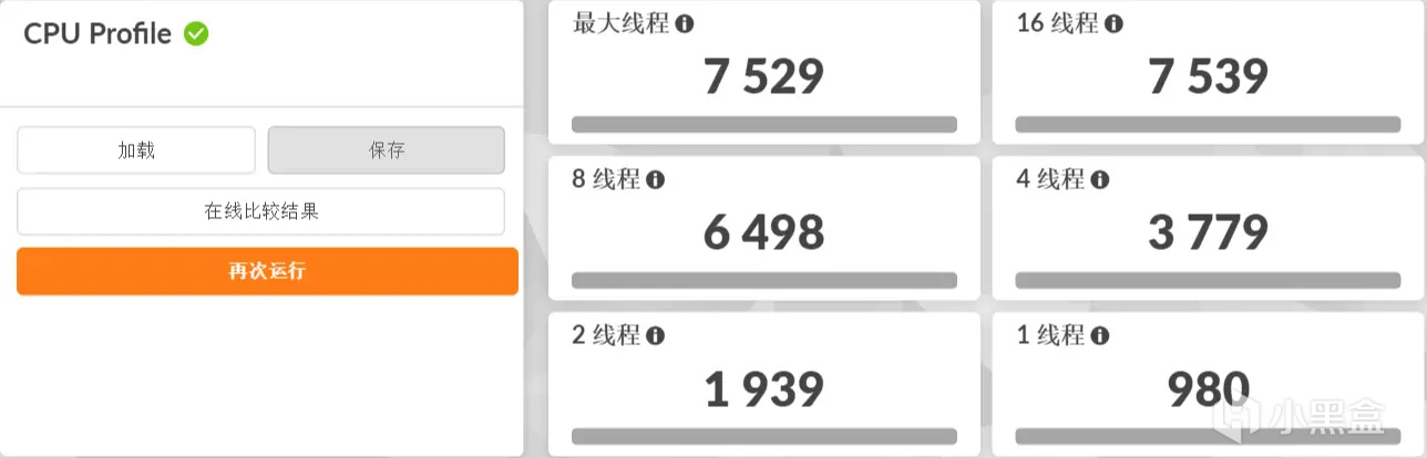 ▲3DMark CPU PROFILE是3DMark最新推出的CPU性能测试工具,其优点是可以分别测试单线程、2线程、4线程、8线程、16线程与最大线程时的CPU性能,以方便不同CPU之间的比较。