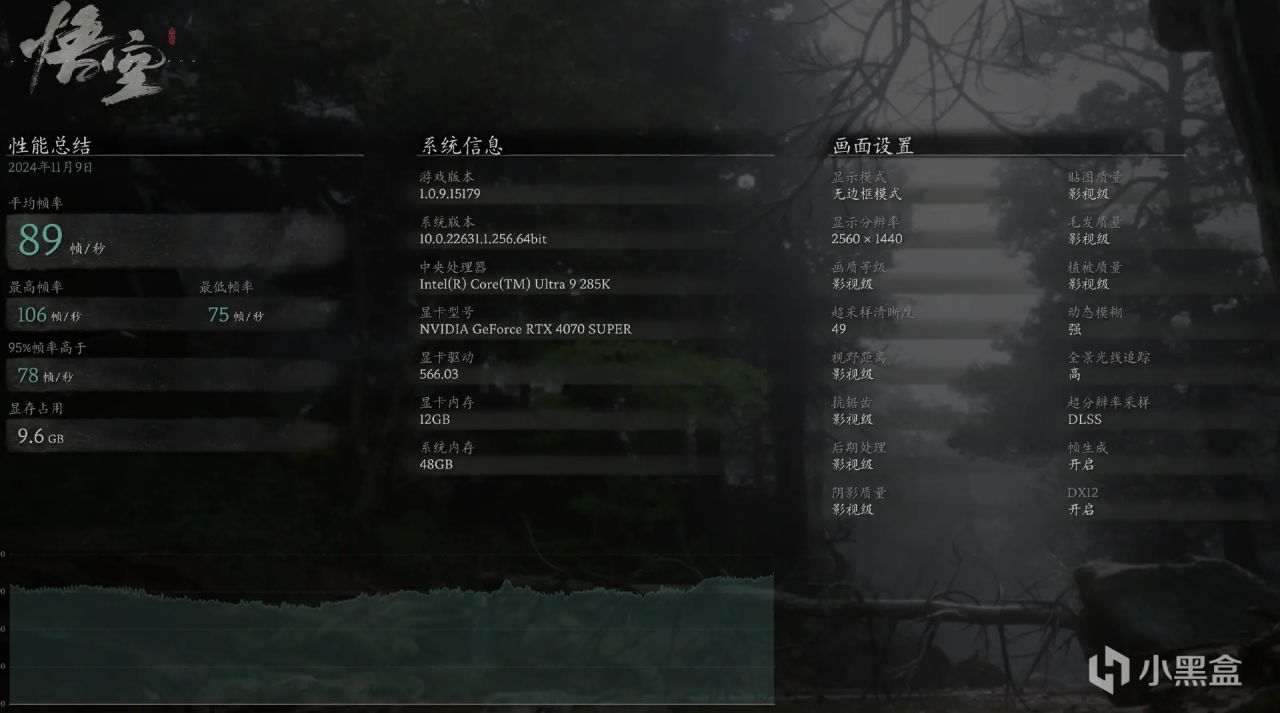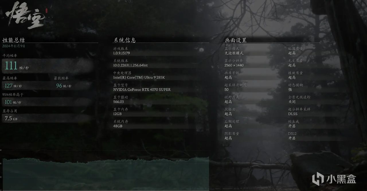▲緊接着,我們直接測一下iGame GeForce RTX 4070 SUPER Ultra W 12GB顯卡搭配新一代測試平臺在國產遊戲之光《黑神話:悟空》中的性能表現吧。