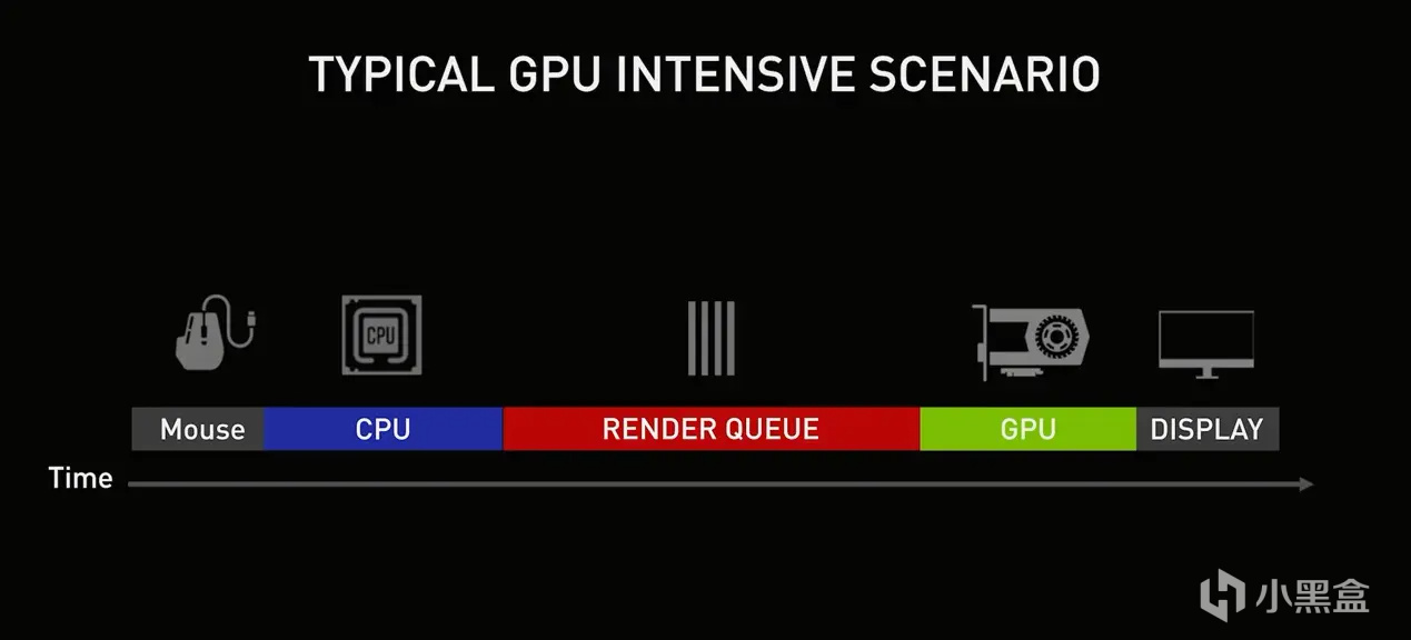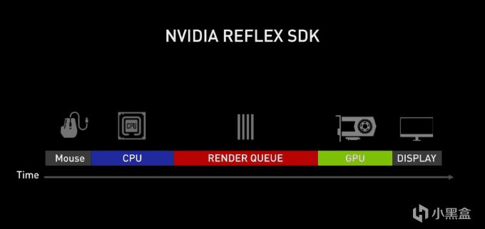 ▲而通過將NVIDIA Reflex SDK直接集成到遊戲中,就可以使CPU的幀處理速度與GPU的渲染速度保持同步,大幅降低渲染隊列,並降低CPU背壓,進而使遊戲能夠採樣鍵鼠等外設最新的輸入並最終降低畫面與輸入延遲,提高遊戲體驗。整個過程需要支持NVIDIA Reflex的遊戲、顯卡、鼠標、顯示器的共同配合。