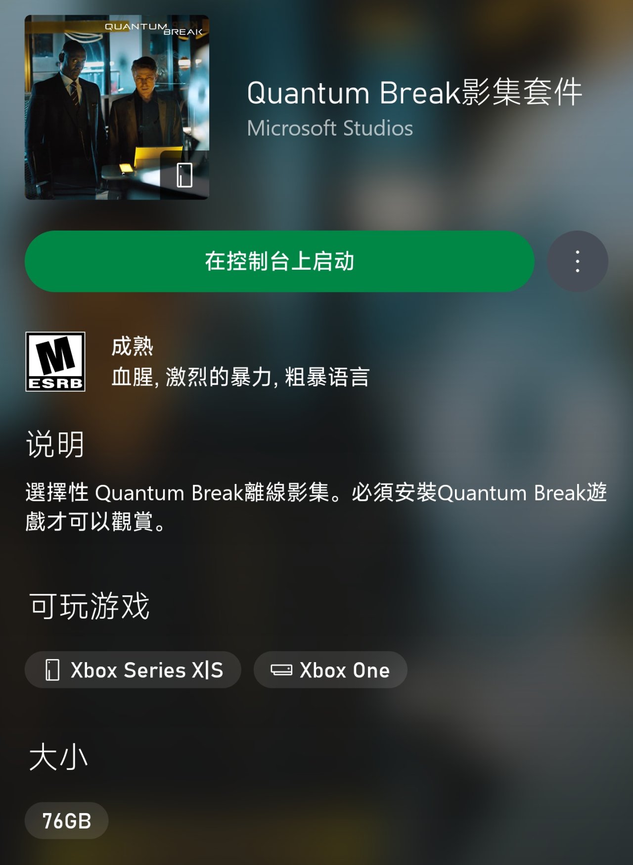 在xbox上可以下載兩個部分,一個是遊戲本體,另一個是真人影集,兩者會在遊戲中穿插,形成故事內容的連貫性和完整性,讓人有種在美劇中當了一次主角的感覺。