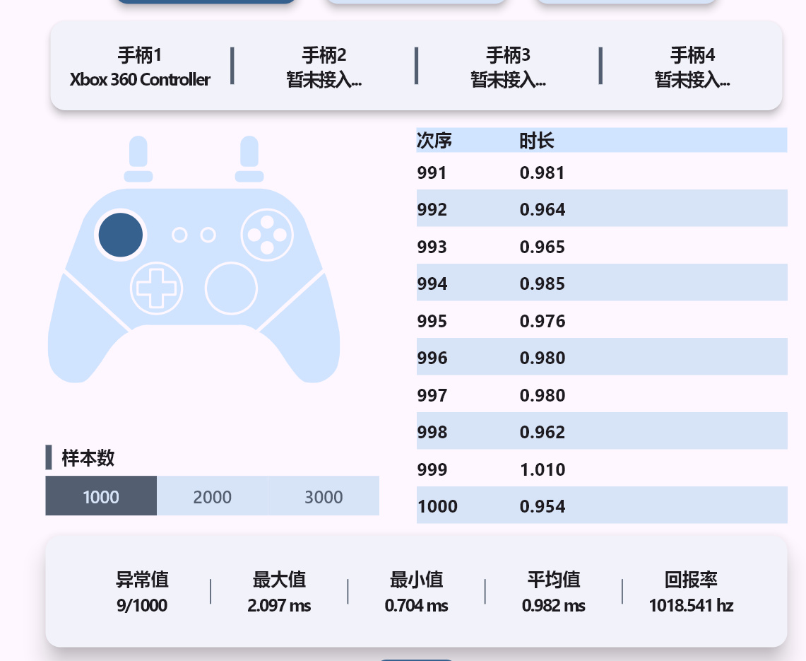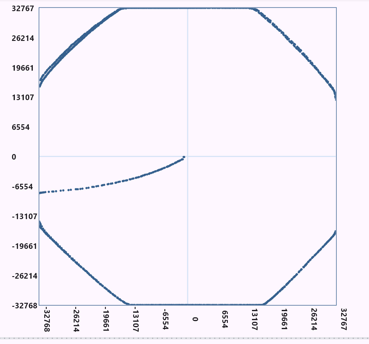 在连续转动摇杆后,我们能看到所测试出的键值分布图也十分的稳定,并且键值点位的分布十分密集。