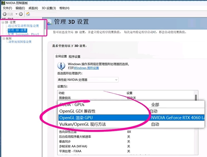 9。openGL渲染GPU你的独显剩下的就根据软件设定了