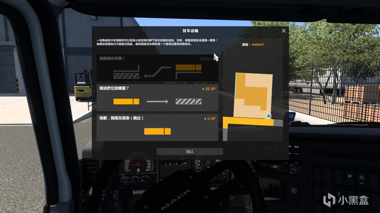 于是游戏中把是否要将挂车送到仓库指定位置的选择权交给了玩家。到达目的地玩家可以在此刻直接选择完成任务,进入到结算页面,也可以选择多花点力气把货物送到更符合场地调度员预期的位置,获得额外的经验值作为酬劳。