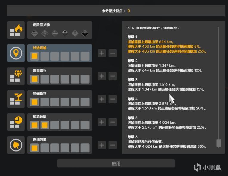 每次的货运任务会增加玩家的驾驶经验,当经验条攒满,角色升级后会获得技能点。