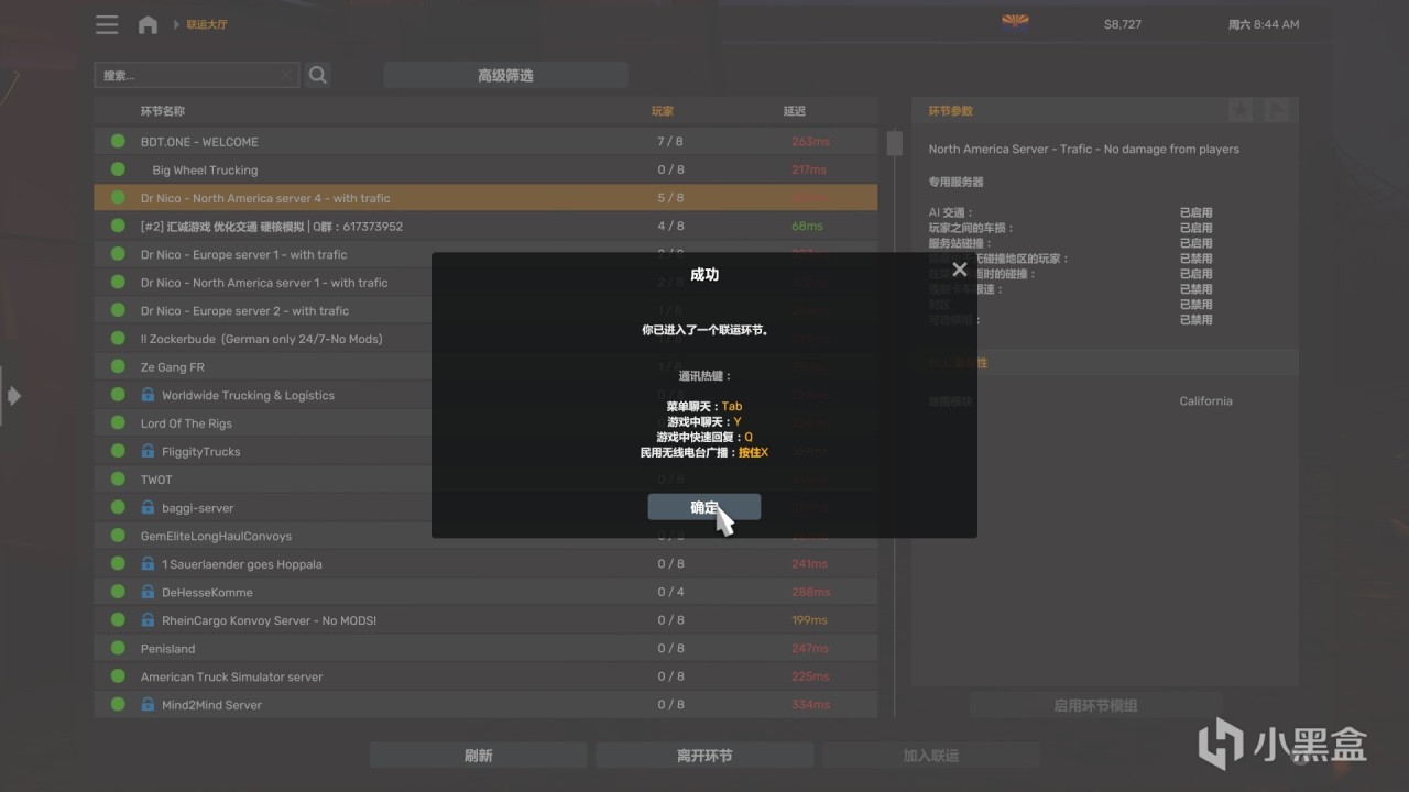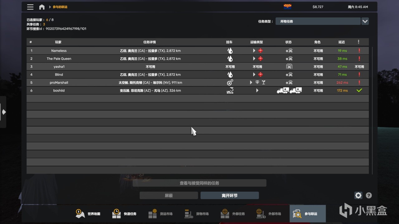 游戏的联机的模式与《GTA OL》有些相似,玩家可以随时进入或者退出这个支持8人共游的联机大厅。得益于该作的服务器遍布区域还挺多,即便玩家不用加速器也可以直接进入一些国内服务器,或者连上部分低延迟的国外服务器。