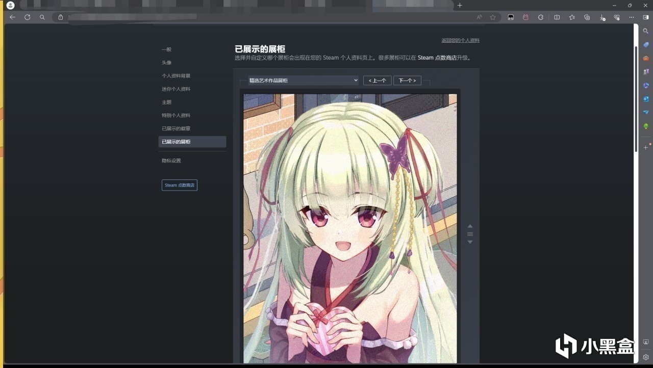 打開steam編輯個人資料頁面,點擊“已展示的展櫃”,將“精選藝術作品展櫃”(注意不是普通的“藝術作品展櫃”)放到最上面,上傳gif,點擊保存