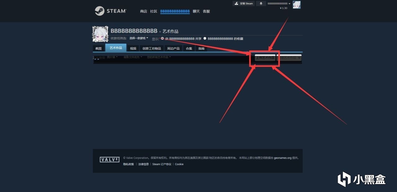 點擊“上傳藝術作品”(點擊後下個頁面選擇“非遊戲特定”即可)