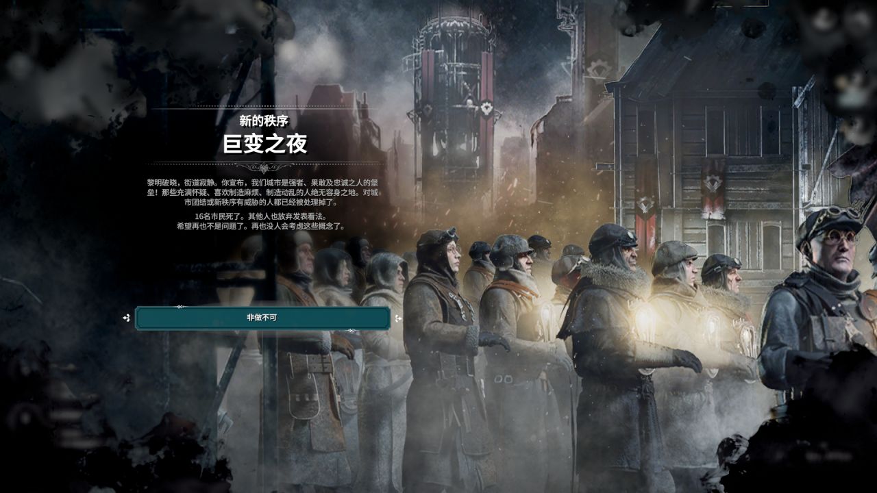 新家在一個墳墓一樣的深坑裏,所有人每天都在工作,只爲供養中心那個提供熱量的黑色高塔。熱量,溫暖,這些東西在極寒的天氣無異於是上帝的垂憐,庇護着人類免於凍斃。採集站、打獵屋、煤礦、鐵礦、醫療站甚至酒館,在新家都建設起來了,首領給大部分人都分配了帳篷並承諾將會在三天內給剩下的人分配住所。我想,首領看起來還不錯,至少我喫上了食物也馬上能獲得一個住處。我和我的孩子也還活着。