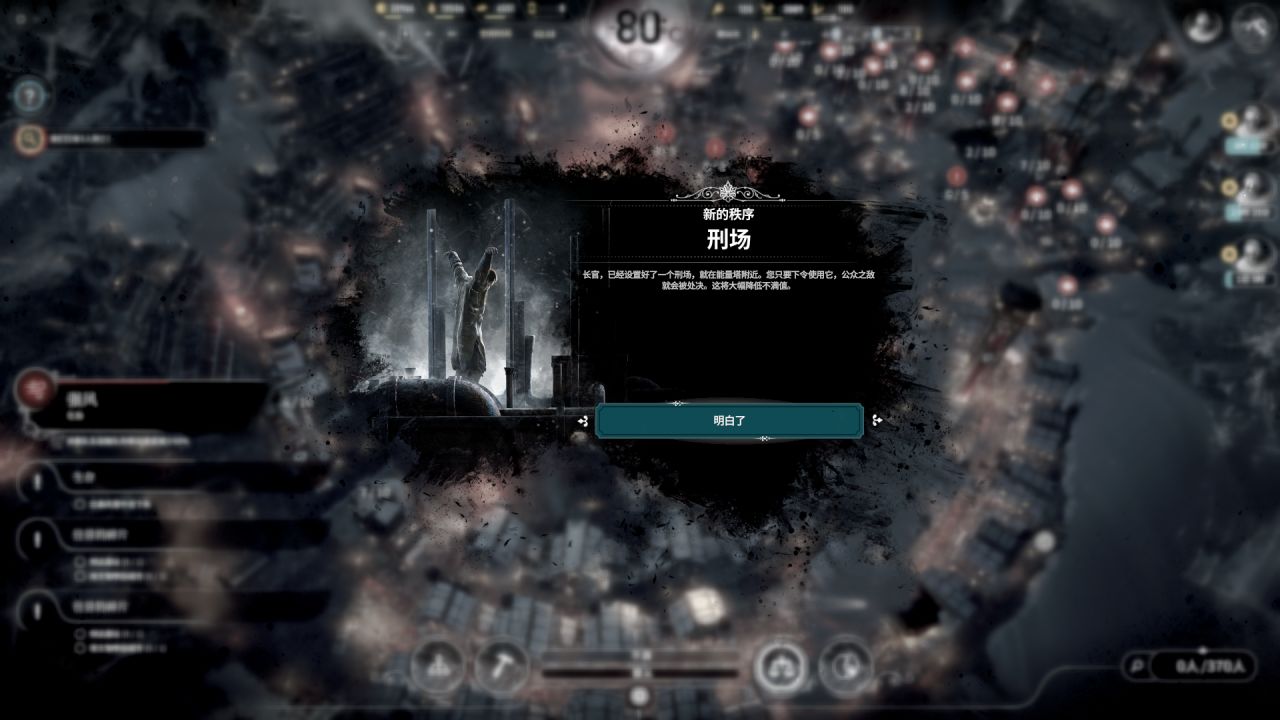 首領很快有了動作。新修溫室提供食物併力排衆議使用屍體做肥料、新建制煤廠、建造鑽木機、擴建冶鐵場……三天,翻修了房屋,提供了食物,人羣平息下來……