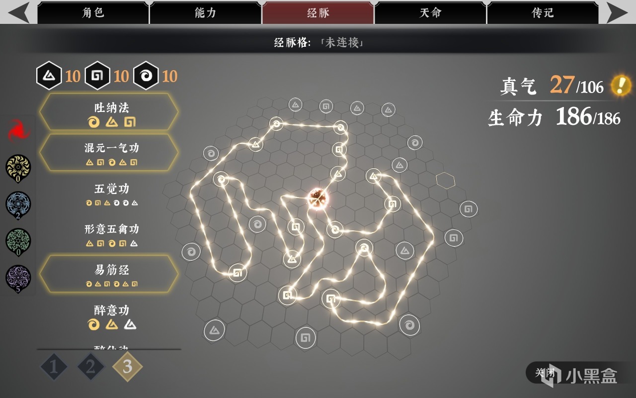 這個戰鬥模式的遊玩體驗有點像卡牌遊戲需要一點運氣,但也很依賴於構築,抽上來的動作如何組合打出最大化收益需要玩家去認真考慮。這種戰鬥模式非常新穎,配上水墨風格的動作演出,這一部分體驗相當好。如果不知道怎麼構築、內功怎麼搭配的話可以加官方的玩家羣。