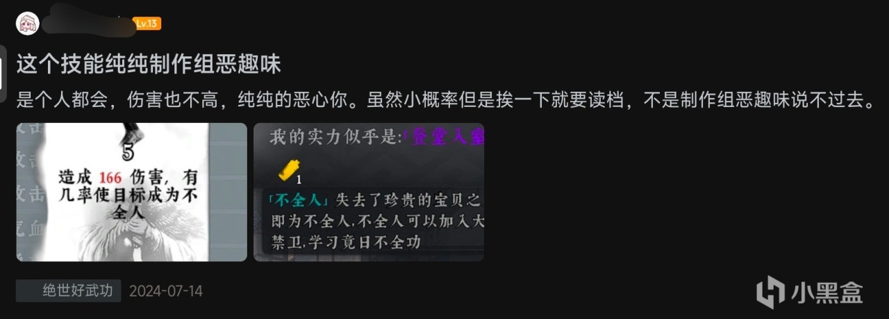 如果你打開《絕世好武功》的社區,你會發現類似於撩陰腿的這種樂子非常多。