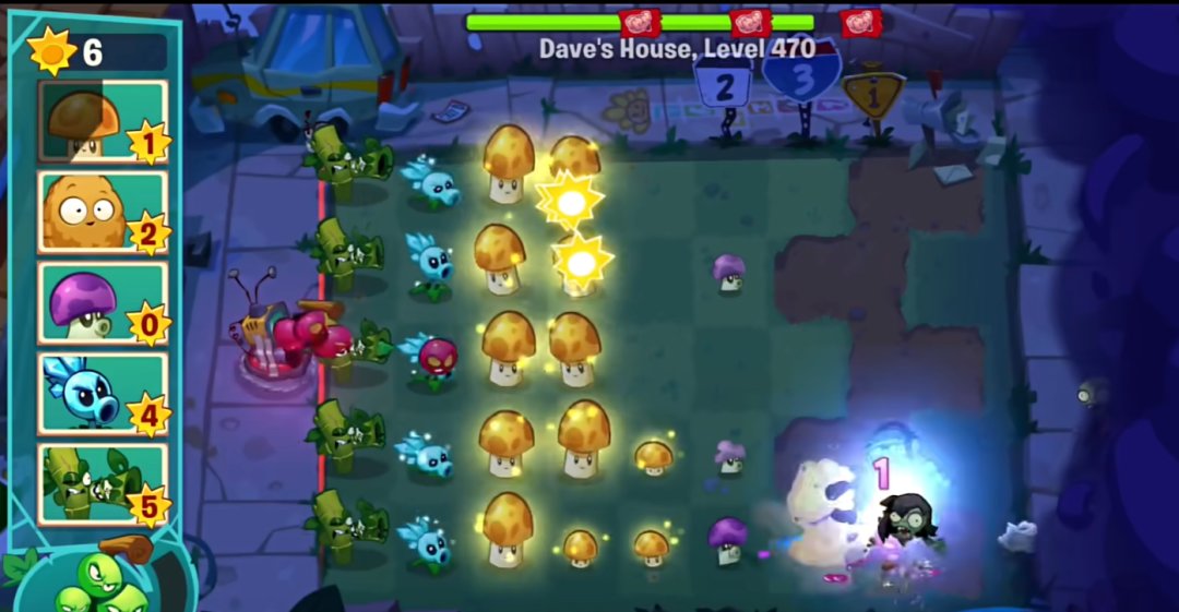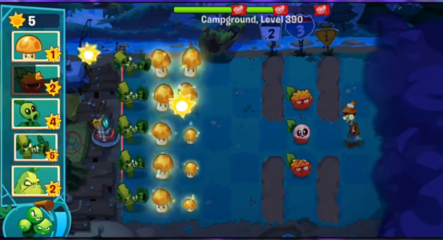官方同樣後知後覺地意識到了這一改動使得關卡完全沒有重玩性。但是積重難返,官方最終選擇提供足足470個關卡供玩家遊玩。470個關卡中有很多關卡的地圖一摸一樣,只是初始提供的植物組合不同。