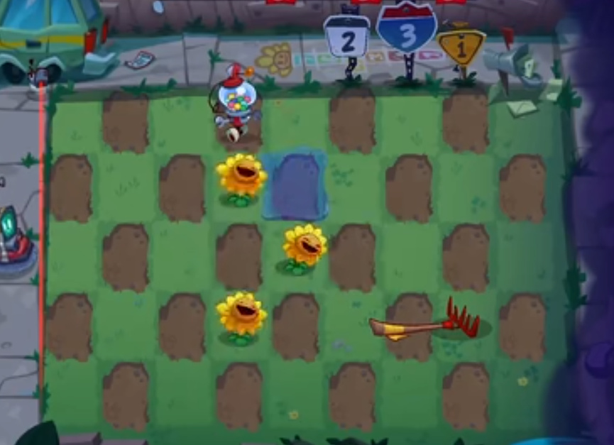 這一改動頗有“違背祖訓”的意味,假若要我選一種植物代表《植物大戰殭屍》,那麼我大概會選擇向日葵。官方刪除向日葵讓陽光變成隨時間自動回覆的本意,也許是爲了減輕玩家在操作上的負擔,在一局遊戲中能有更充裕的時間,根據場上的形式種植物或者使用道具,不用隨時盯着向日葵收集陽光。然而直接刪除向日葵這樣缺乏考量的改動,無異於自廢武功後去學了市井流氓拳,玩家在陽光經濟上的多種選擇策略被削減成了一種,給玩家減負的同時,玩家也失去了一部分的遊戲樂趣,無疑是本未倒置。