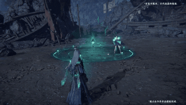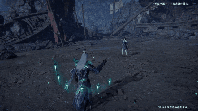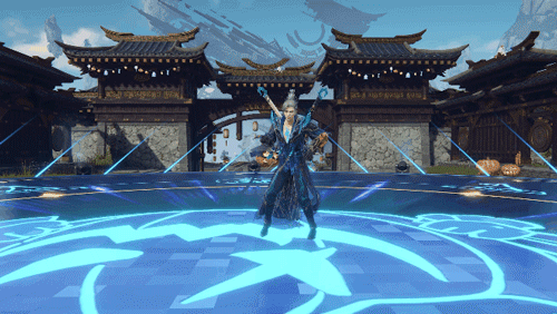 金石幻化成閃着青光的生死令牌環繞在身體周圍,與肩飾的色彩交相輝映。