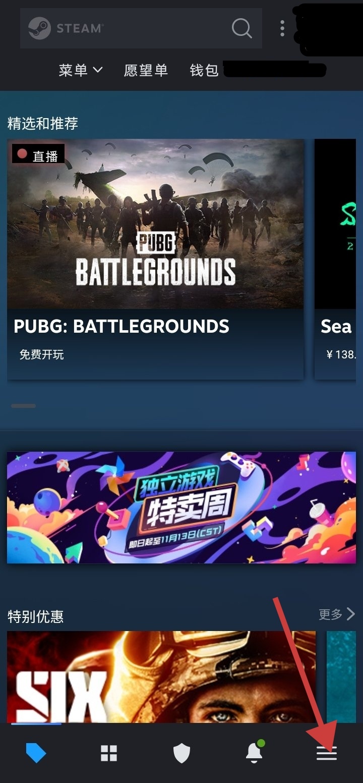 1.打開加速器後,打開steam,點如下圖箭頭所指位置。