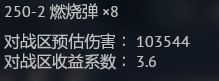 a2d的航彈最小當量250磅總計十四枚正好可以觸發戰區的殘血自損機制收掉一個戰區,但是他的實際當量僅有0.898噸,僅從當量上來說是收不掉一個戰區的,但是命中次數高達14次又彌補了這一點。而且14枚250磅的收益係數高達10.0,同樣能收一個戰區的3*2000lb掛載係數僅有7.5,雖然2000掛載炸戰區的當量爲1.41噸但是獲得的分數也是大相徑庭(低了整整200分)。