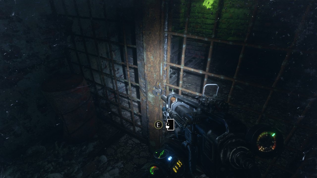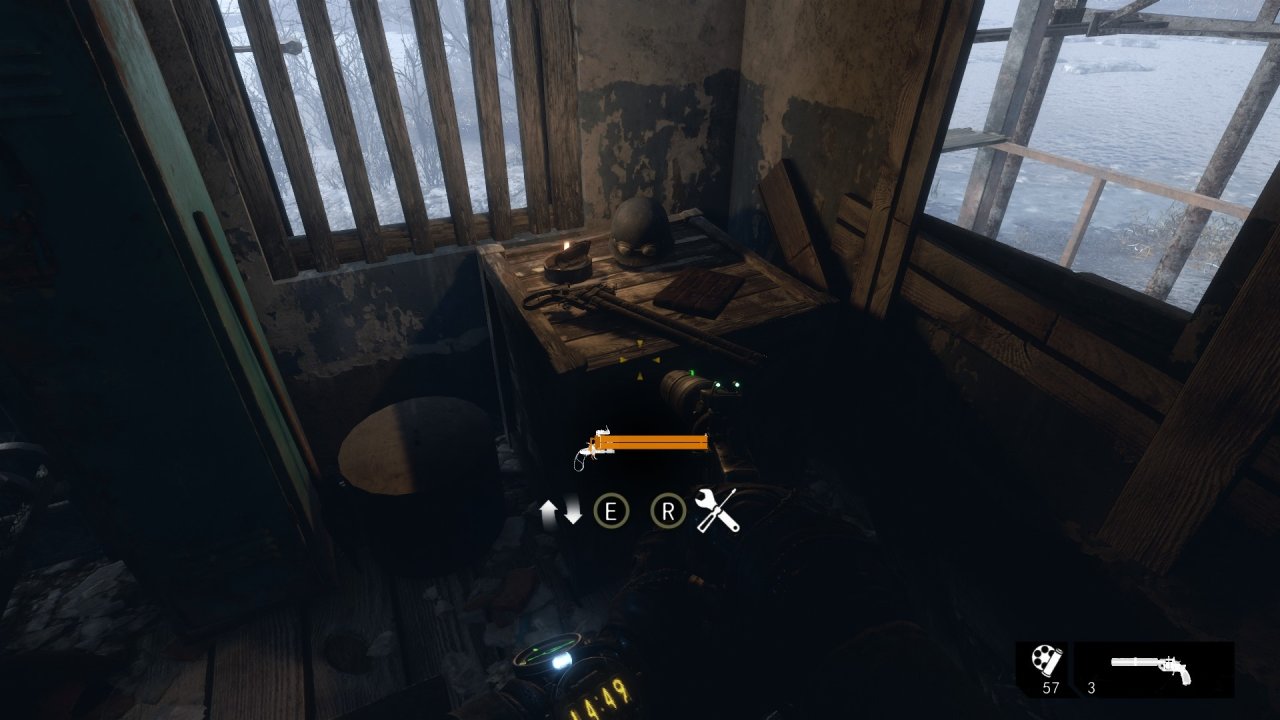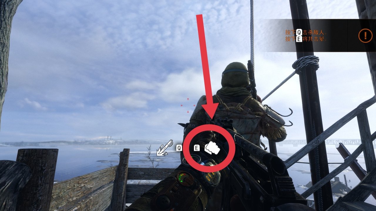 救老婆的地堡中,會路過一個鎖上的房間,我們按“V”可以拿槍托敲掉鎖🔒!裏面有我們的槍配件