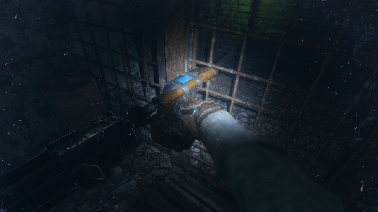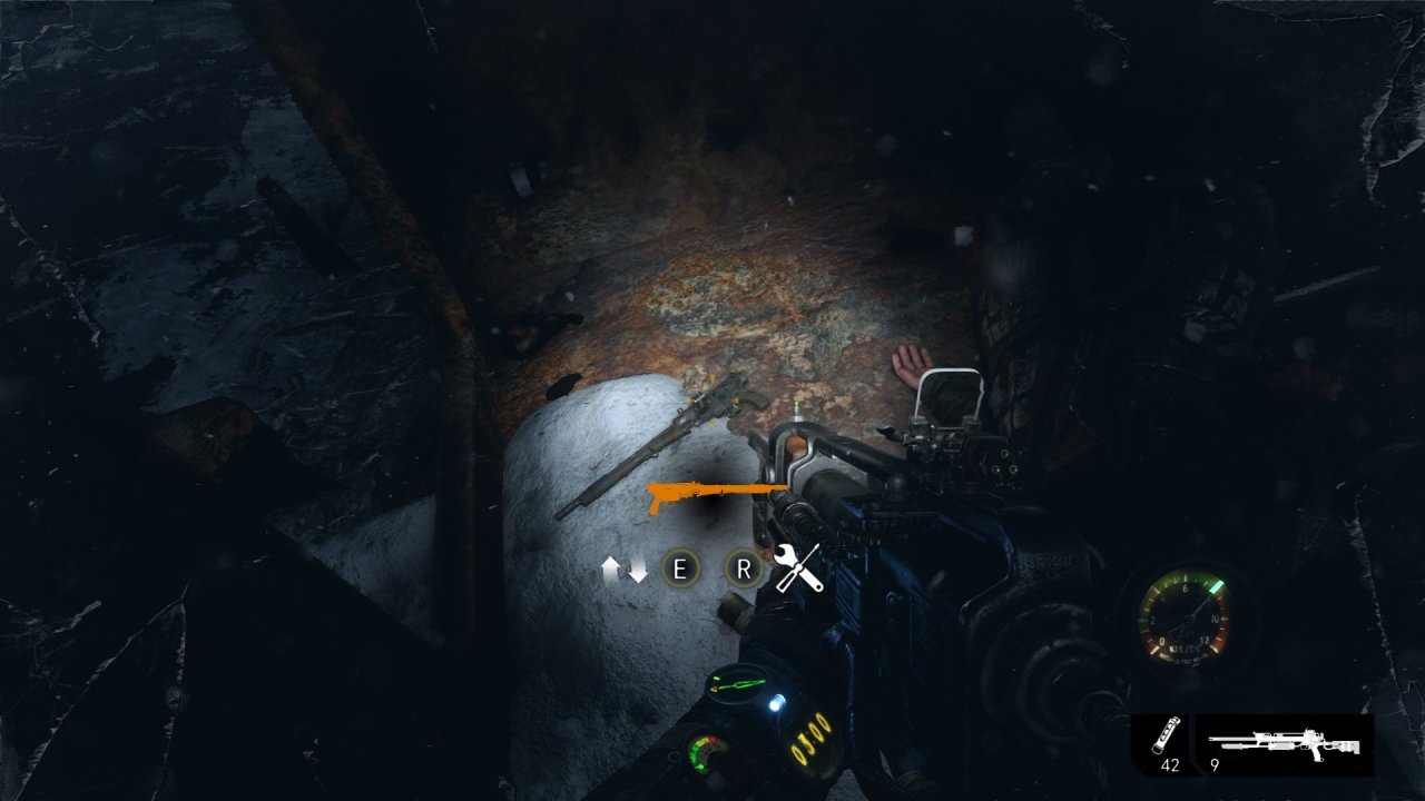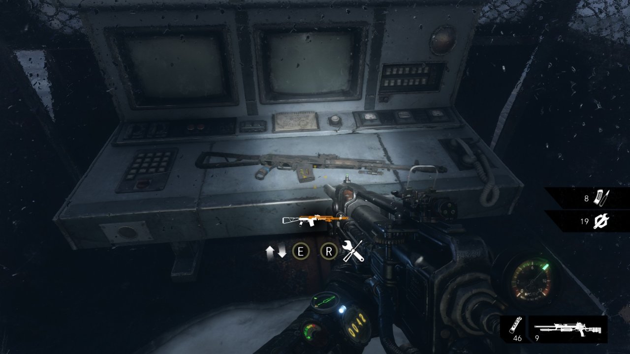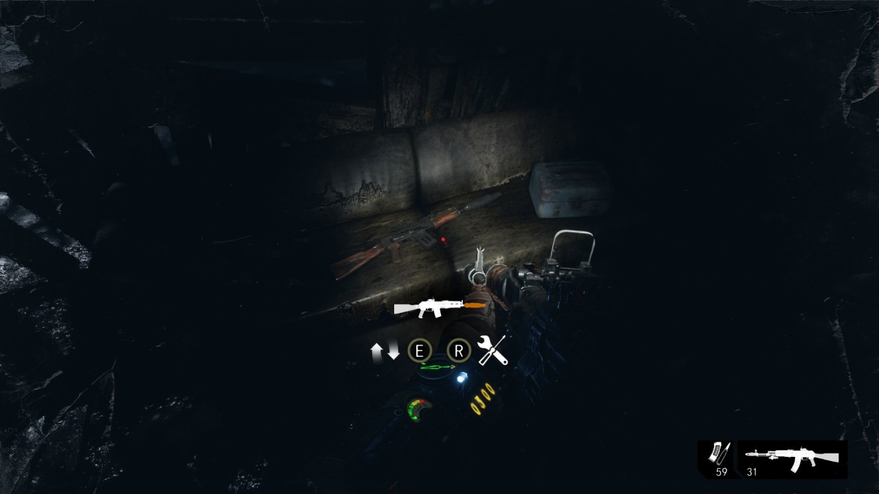 救老婆的地堡中,會路過一個鎖上的房間,我們按“V”可以拿槍托敲掉鎖🔒!裏面有我們的槍配件
