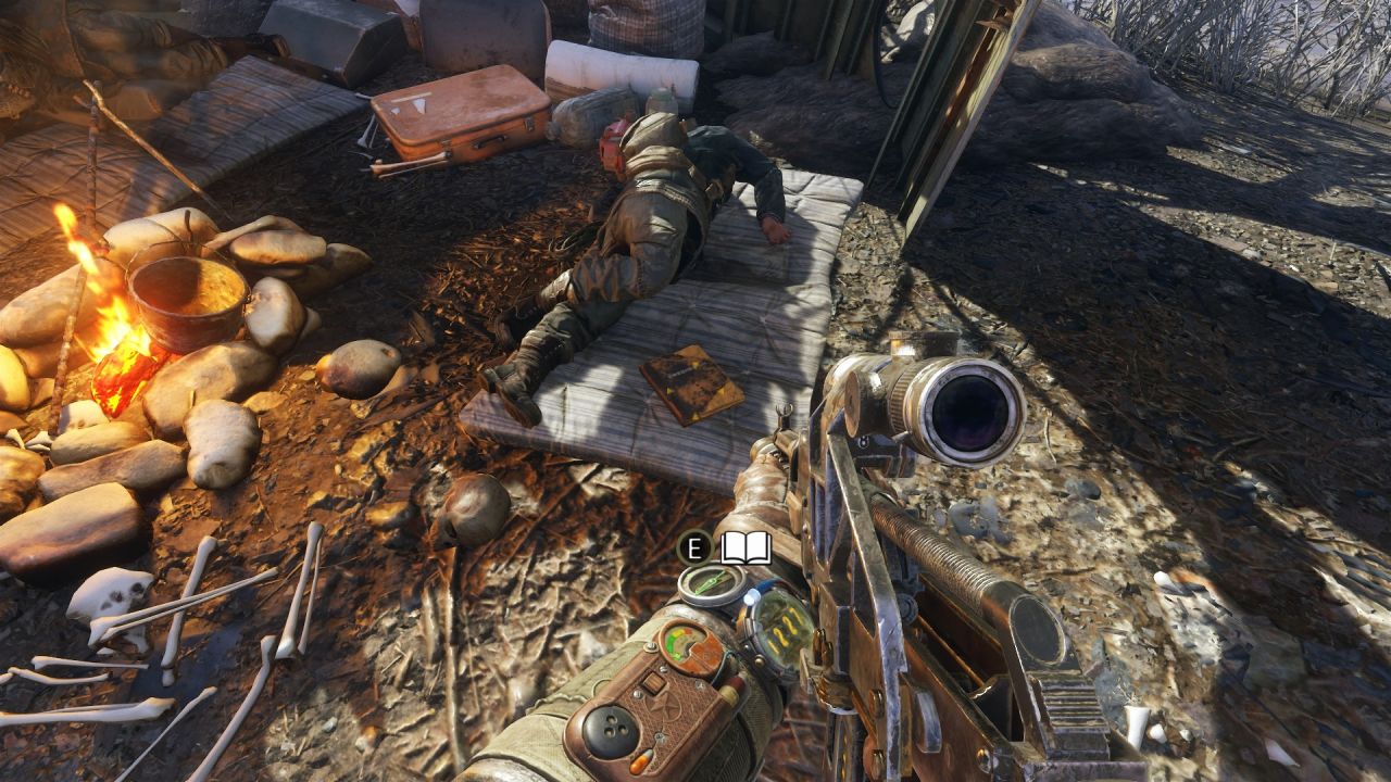 坐船被弄翻被救起來後,我們回火車路線上會看到一個飛機殘骸!裏面會有一個槍配件和指南針,但是我才注意到我手上一直有指南針!!!我人懵了,爲啥我有?來個懂哥解釋一下!等會可以在工作臺上裝上去!