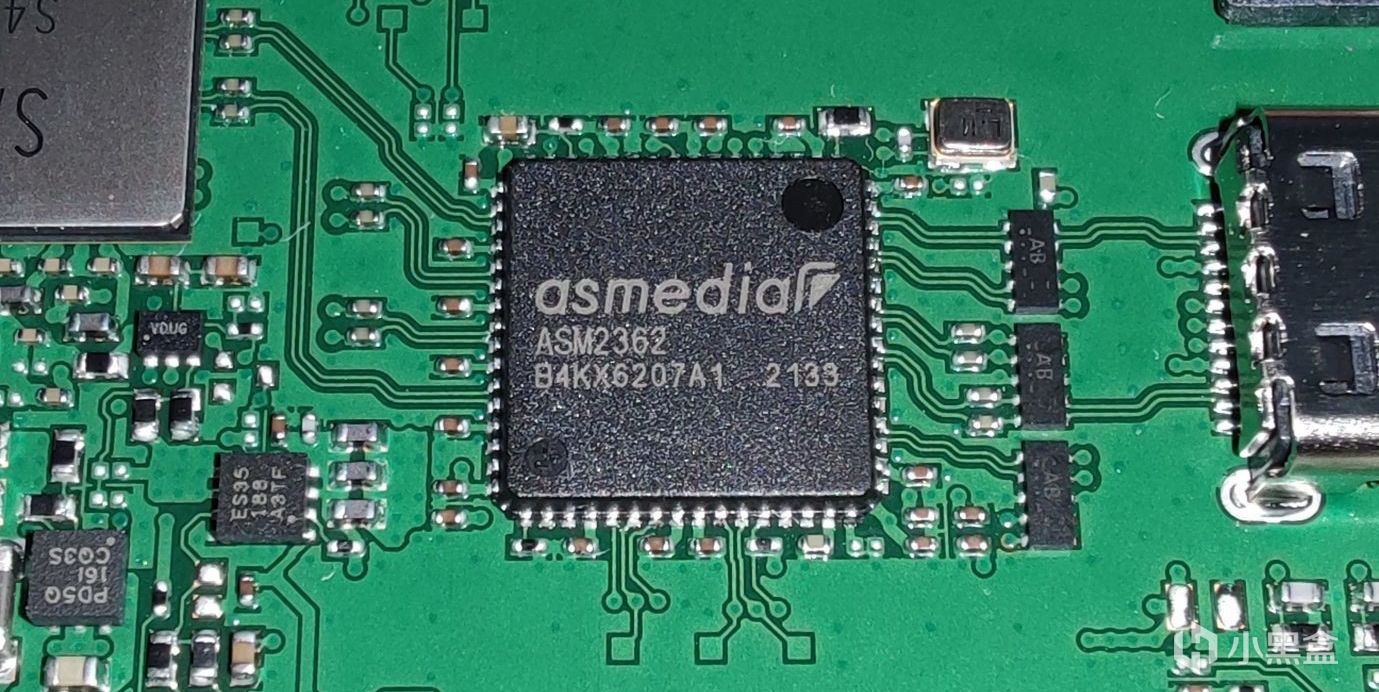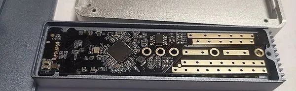 而ASM2362橋接芯片本身,更是完全沒有任何散熱措施。哪怕它正對着一大塊鋁塊,廠商也寧可讓它“裸奔”——在之後的測試中,我們將見到這不合理設計的嚴重後果。