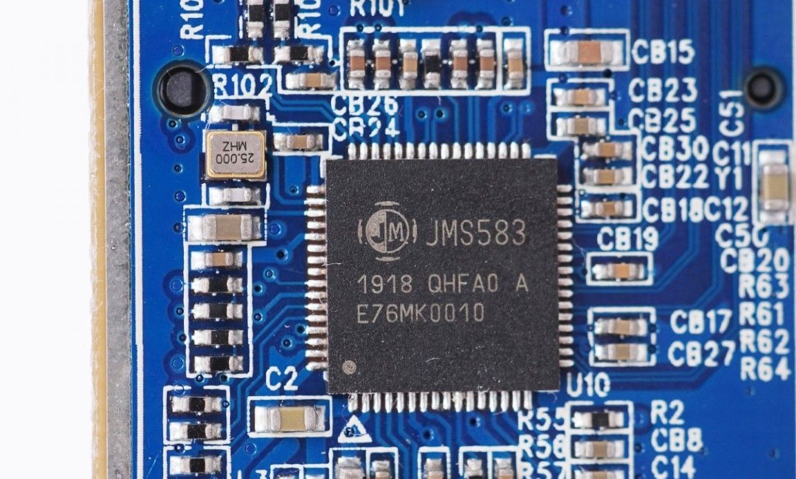 而久經沙場的老將JMS583,整體表現不夠突出。由於不支持ASPM功能,它的待機功耗相當高,會帶來大量額外的發熱。此外,在一些較新的“銳龍”平臺上,它遭遇了嚴重的兼容問題,穩定性口碑正受到挑戰
