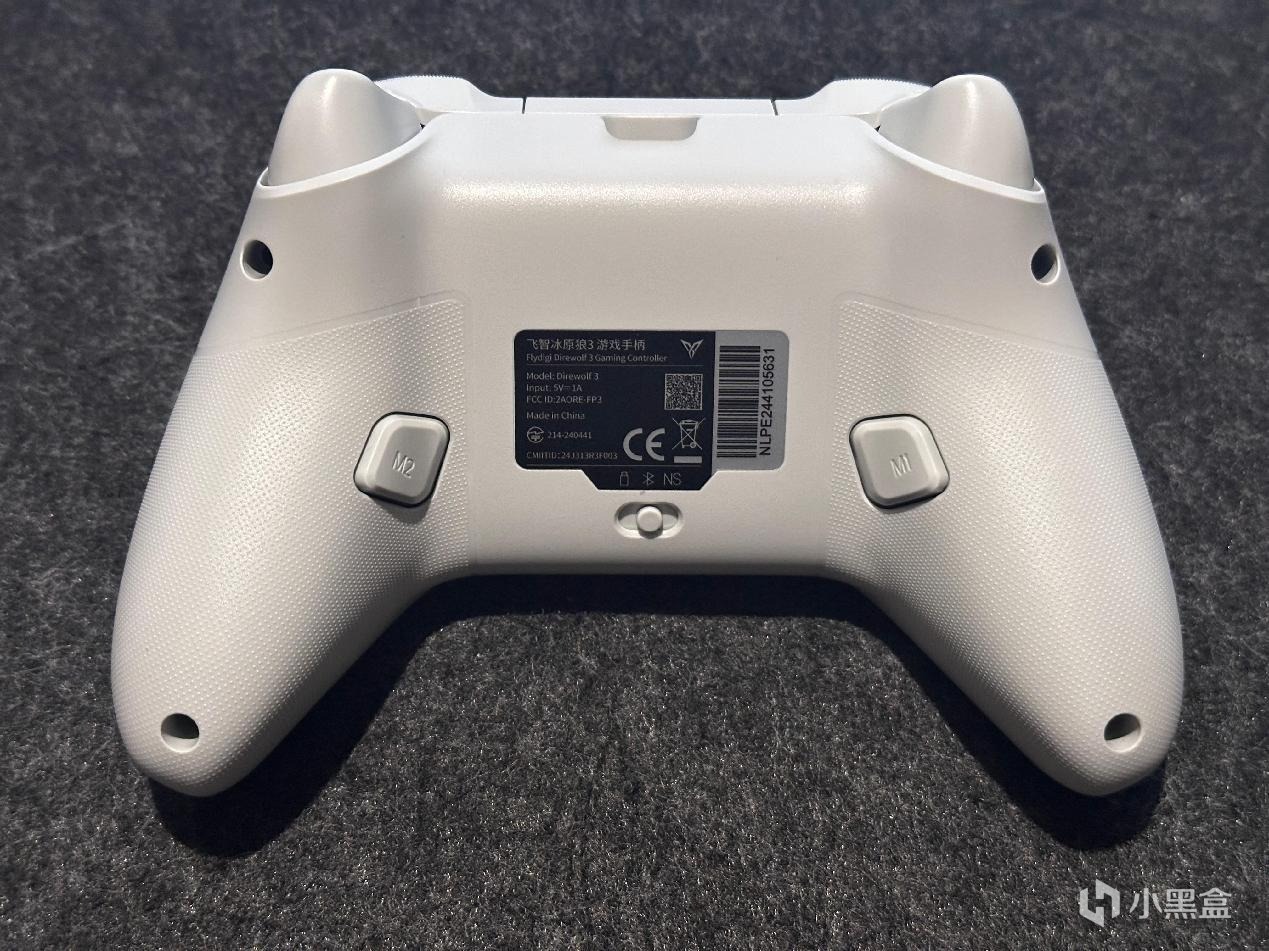 看到手柄的背部依旧设计了两颗可自定义背键M1、M2,并且在握把处采用了激光雕刻的防滑纹路,相较于上代更深,防滑效果也更好了一些。