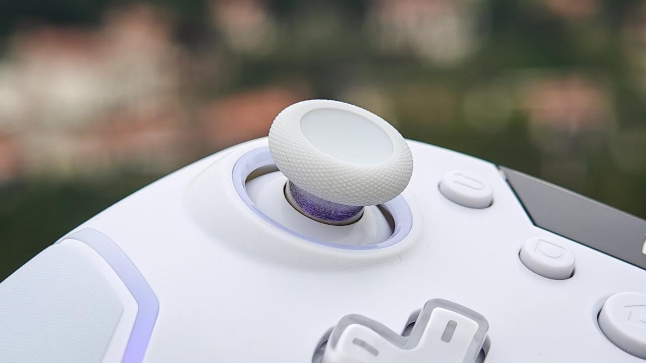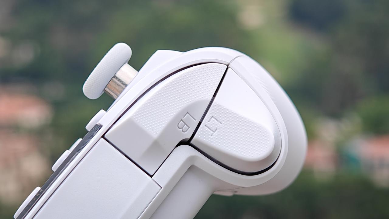 手柄肩键也是采用的微动按键设计,按压力度轻盈,声音清脆,扳机为双切扳机,支持微动与霍尔线性的切换,肩键与扳机处均有防滑纹路设计,增加手感的同时还防滑。