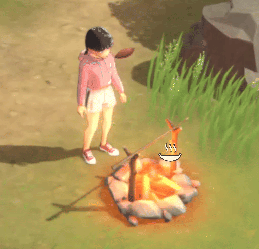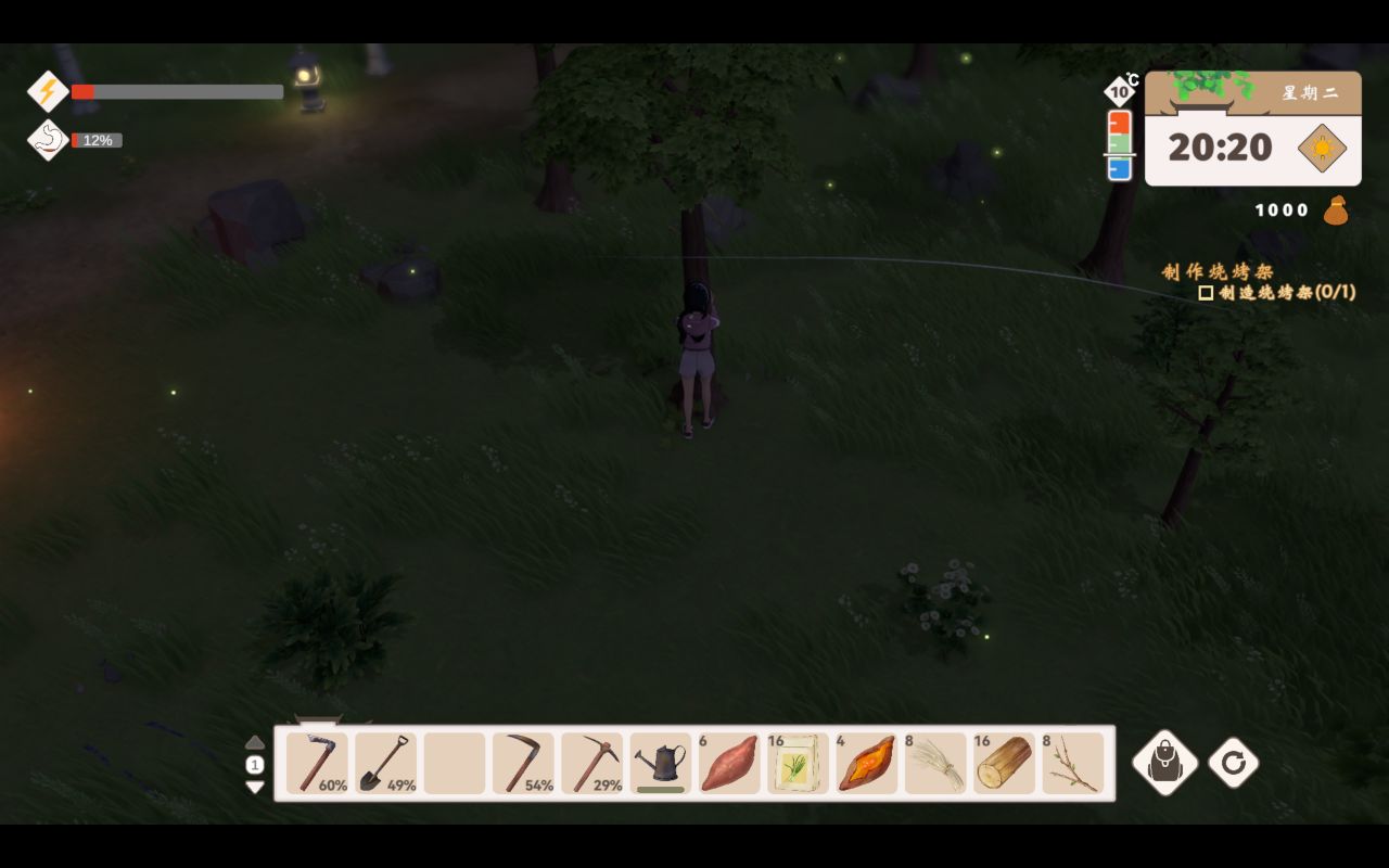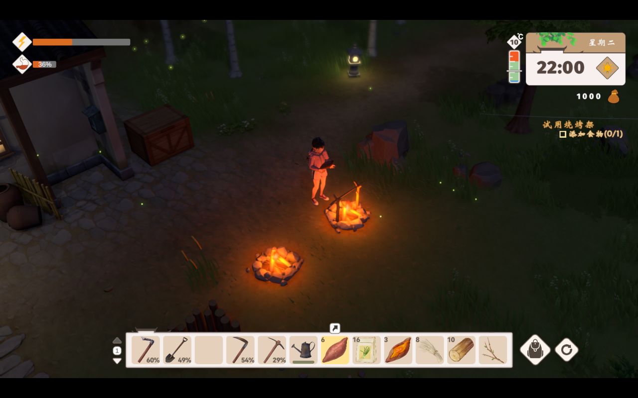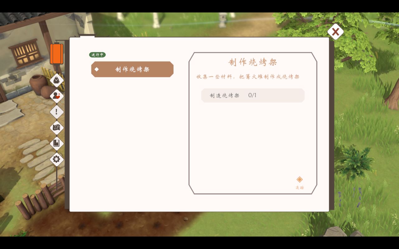 任務要求我們製作烤架,但是起初我並沒有找到怎麼製作,只有提示裏的把篝火堆製作成烤架