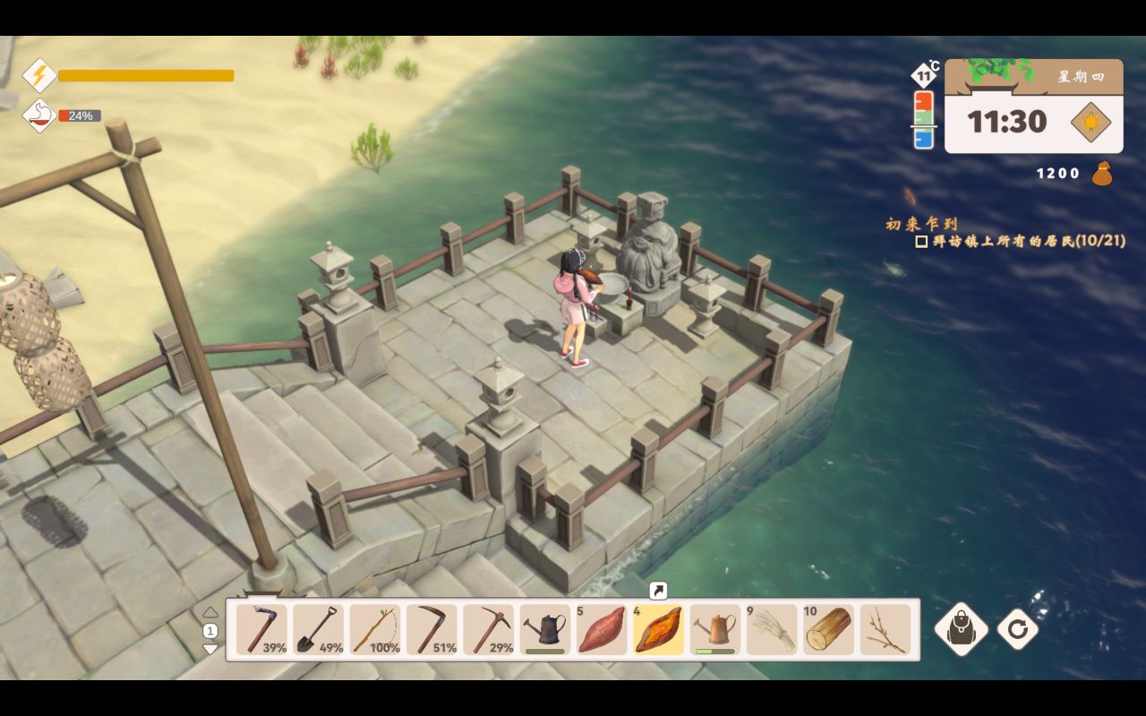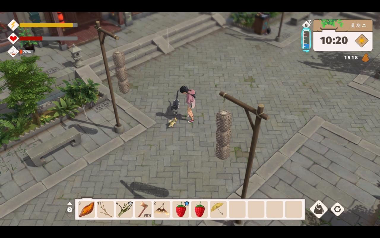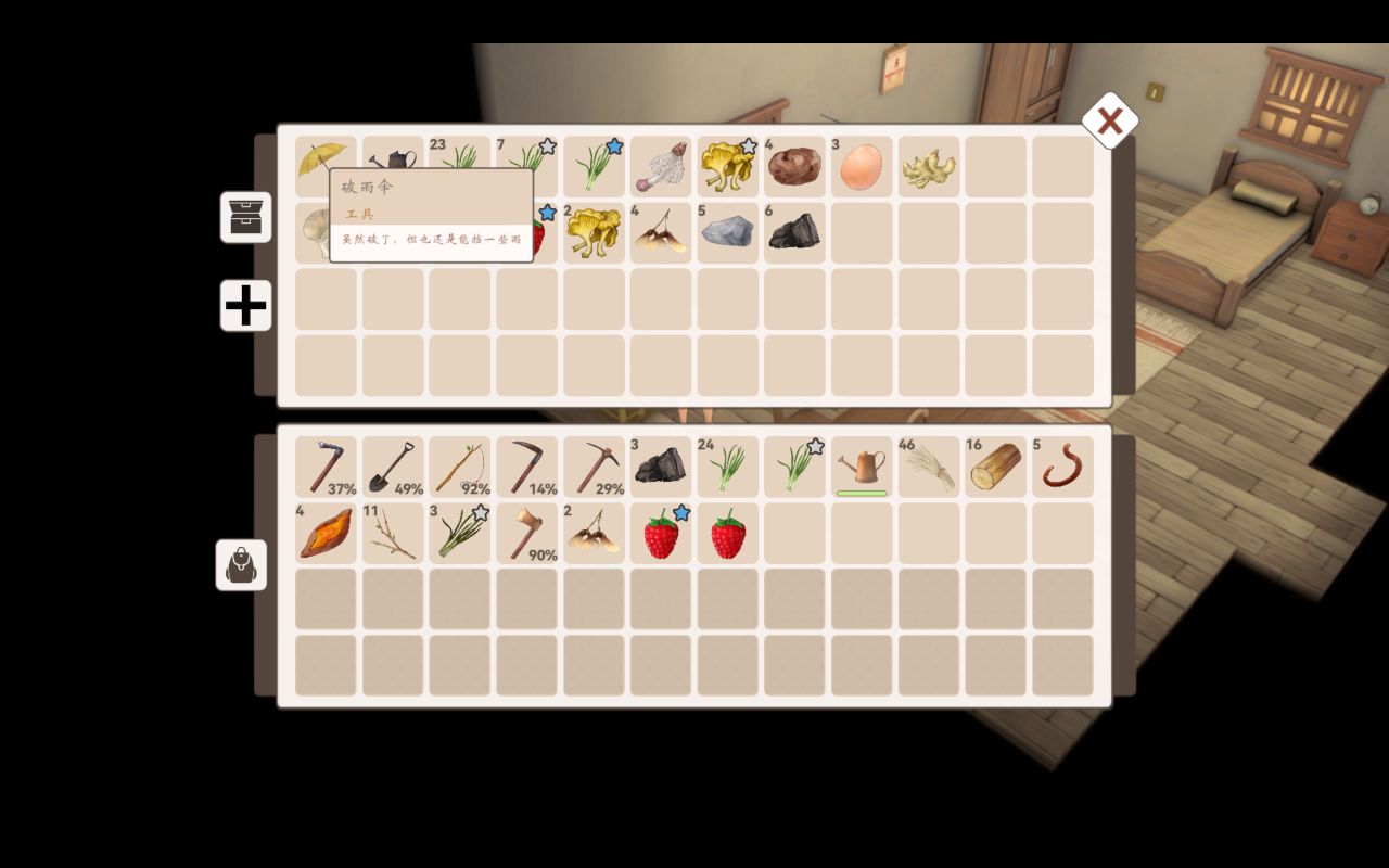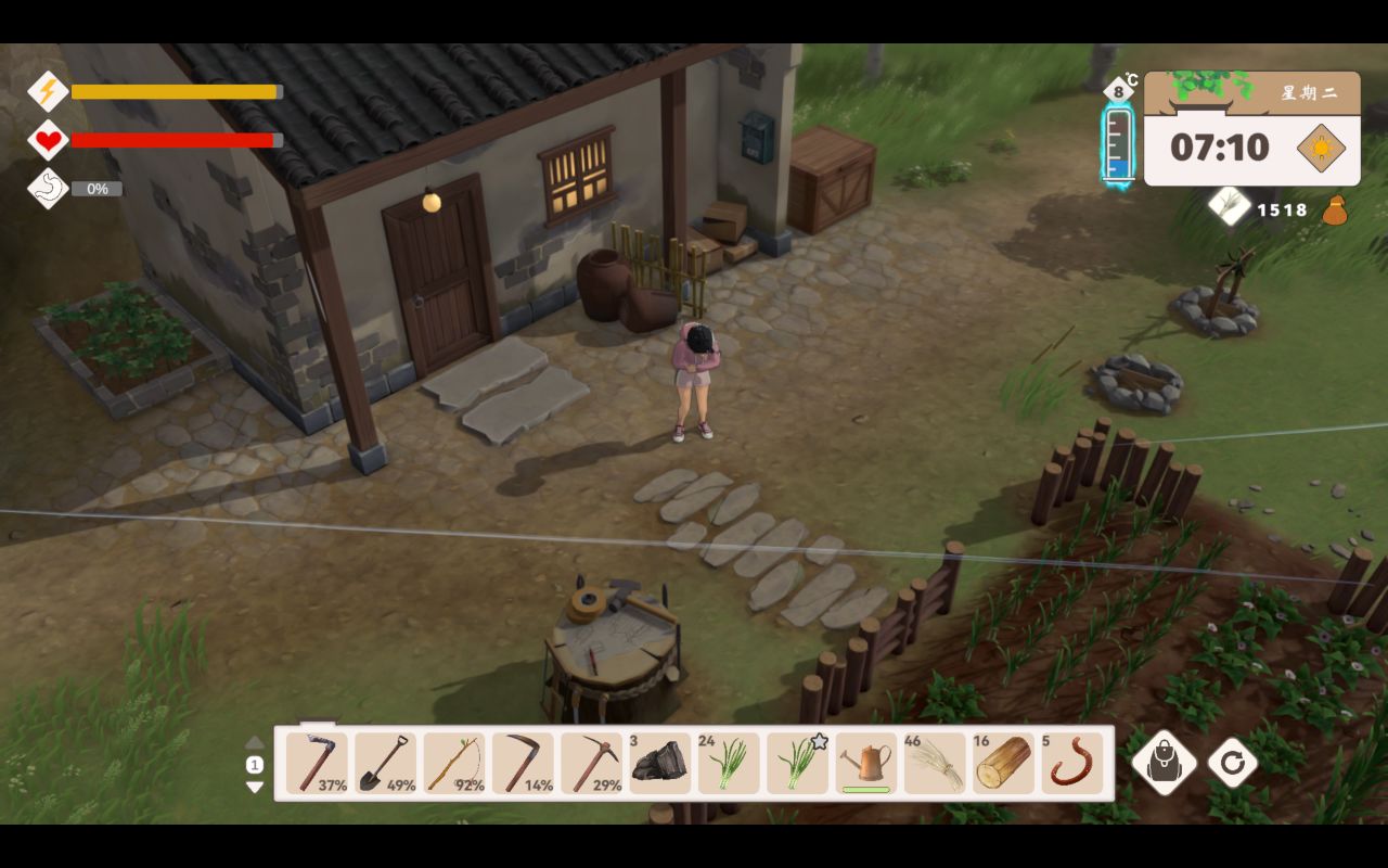 這時候我發現,我們淋雨會扣血,而且在下雨天的時候我們沒法種地