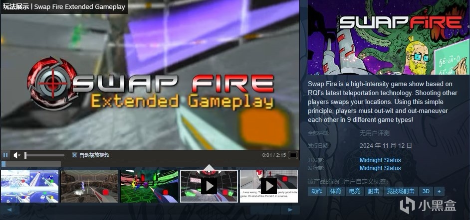 Swap Fire最初是任天堂Wii U獨家遊戲。隨着Wii U eShop的關閉,我們決定通過Steam保留Swap Fire。我們對Steam Remote Play Together感到特別興奮,它允許Swap Fire的本地多人遊戲體驗首次上線。請查看我們的Steam Remote Play Together視頻教程,並確保與您的朋友分享。他們不需要遊戲的副本來和你玩!爲了充分利用這個機會,Swap Fire將於2024年11月11日至12月12日免費提供!!!之後,根據任天堂評論家(見視頻鏈接)的建議,遊戲售價爲9.99美元。
