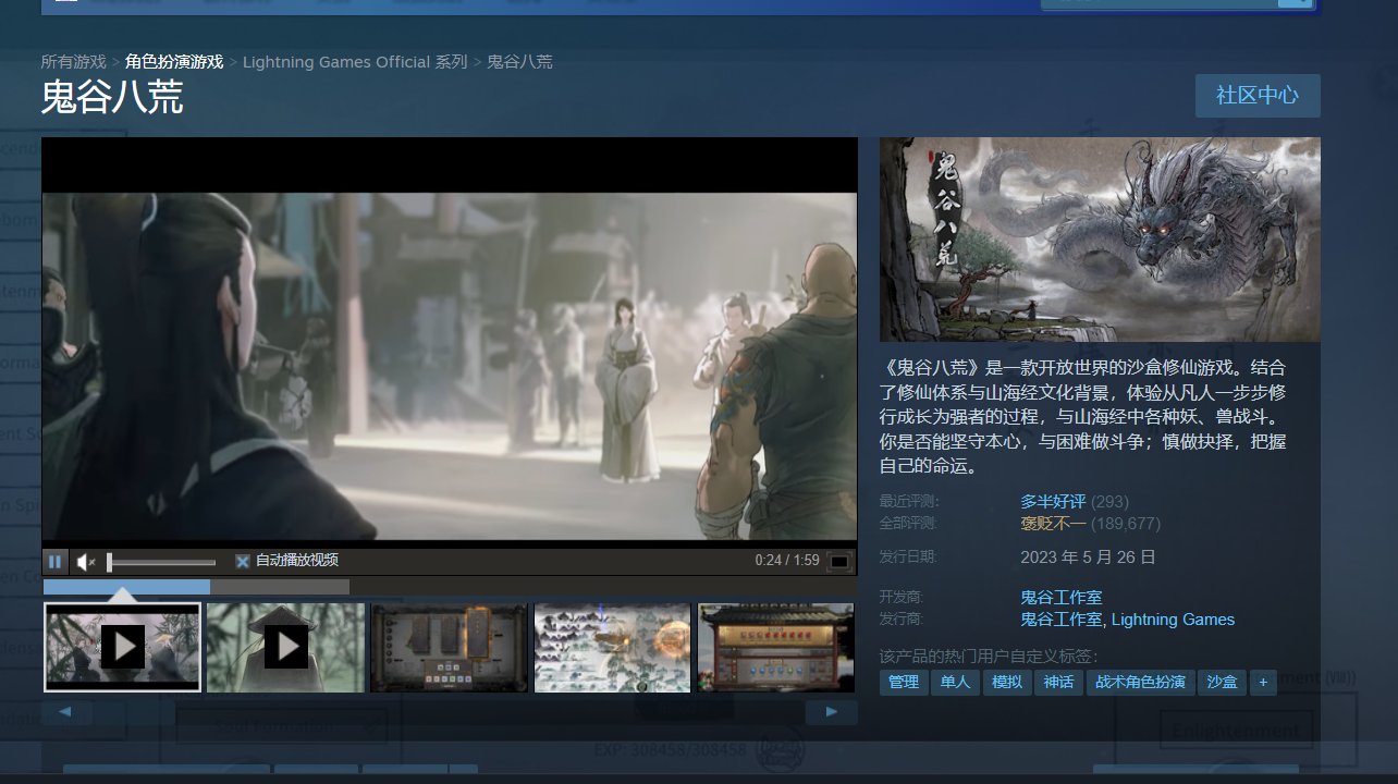 首先《鬼谷八荒》在Steam平臺上取得了顯著的成功,一度登頂Steam全球暢銷榜。遊戲上線後不久,就因其獨特的單人修仙和開放世界玩法獲得了大量玩家的好評,好評率達到了87%。此外,遊戲的同時在線人數曾超過18萬,這在Steam所有遊戲中排名第33,創造了國產獨立遊戲的新紀錄 。