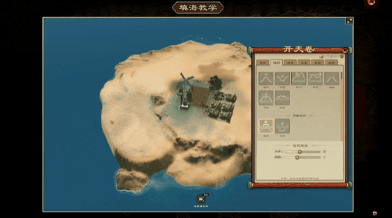 除却「聚宝」「疾风」以外,游戏还有类沙盒模式「桃花源」。在这个模式当中,玩家没有任何生存压力,甚至可以开山填海任意改造地形,但「经营」部分无法跳过,玩家要积累资源扩大城市才能解锁全部景观建筑。