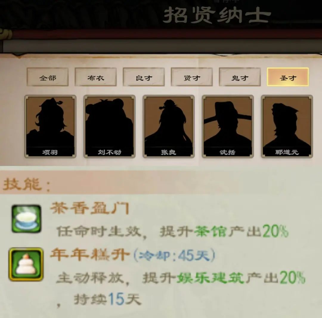 鸿野县的城市规模不断扩大,这个时候单靠一个县令已经无法满足管理要求了,于是就要扩充管理班底,招募「谋士」为你出谋划策。「谋士」的技能可以为生产增添效率,玩家研究如何搭配「谋士」阵容也是一种乐趣。每到年底,玩家还要像老板一样主持年会,给小弟们发发福利。