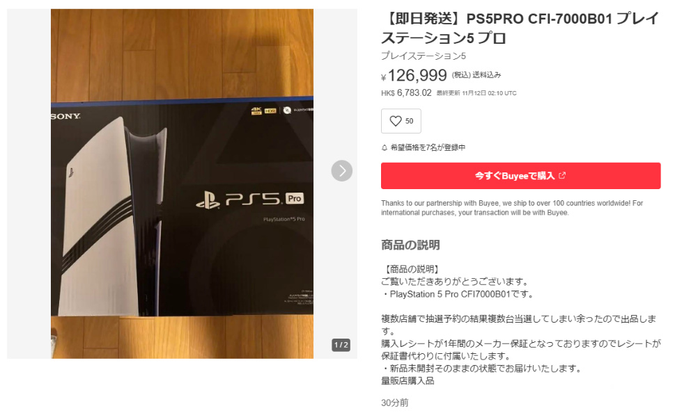 由於日本PS5 Pro貨源相對稀缺,二手交易市場上的售價倒是相對穩定,煤爐(Mercari)上售價通常在12萬日元至13萬日元之間,雖然略高於官方定價,但考慮到煤爐會抽取賣家10%手續費,許多黃牛被抽完之後仍然虧本。