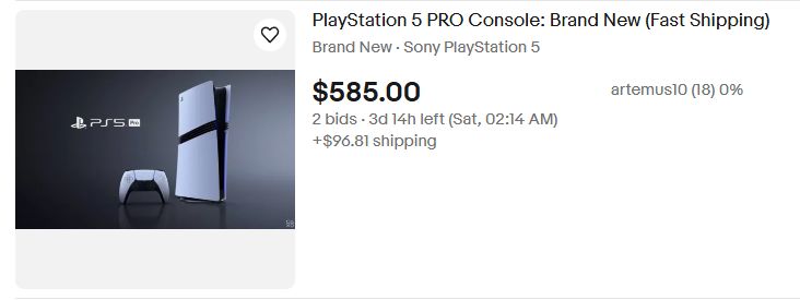 其他國家的情況也一樣,eBay上許多賣家正在以600多美元的價格(官方定價700美元)虧本拋售PS5 Pro;而在拍賣區,一些機器的起拍價更是低到了500美元左右——雖然最終成交價格會有一定幅度上升,也不太可能達到700美元。