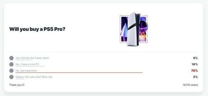 此前IGN做過一份PS5 Pro購買意願調查,結果91%的玩家沒有購買意願