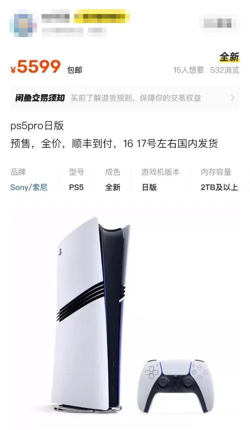 因爲供過於求,目前閒魚上的PS5 Pro已經普遍大降價到了5500左右,與官方定價基本相當。其中比較倒黴的是倒賣日版機器的黃牛,由於日版官方定價最貴,爲了儘快拋售機器,黃牛不得不以低於官方定價的價格出售,折騰一趟自己還要倒貼幾百塊國際運費。