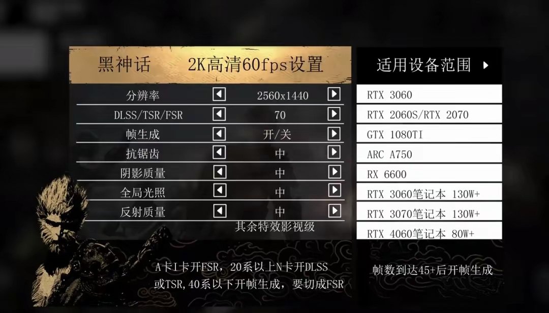 两者都能减轻gpu负担,但他们也会产生画面糊,画面延迟等问题。所以这设计的优化程度的合理配置。而就黑神话悟空而言,有以下几个比较影响帧率和画质的选项。