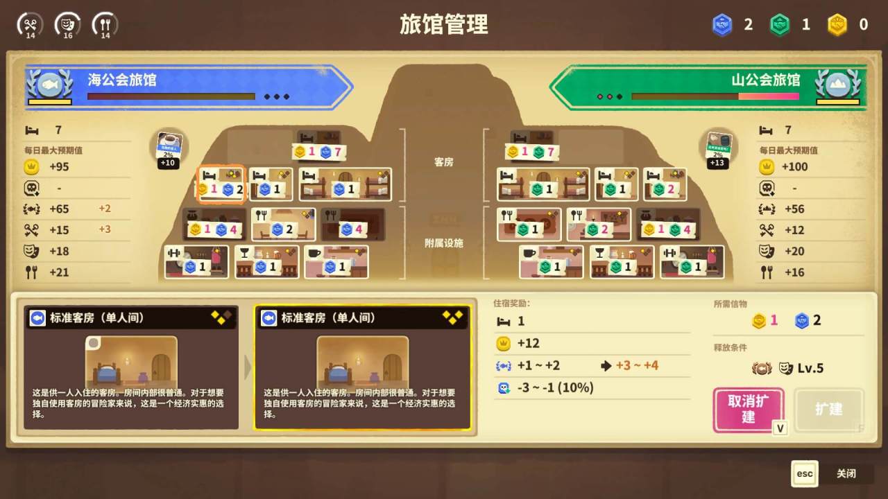 一方面,玩家需要利用广告牌、小吃摊、能量饮料等道具,吸引并招揽顾客前来入住;另一方面,玩家也需要审时度势,避免两家公会的冒险家们在旅馆前相遇并发起战斗。