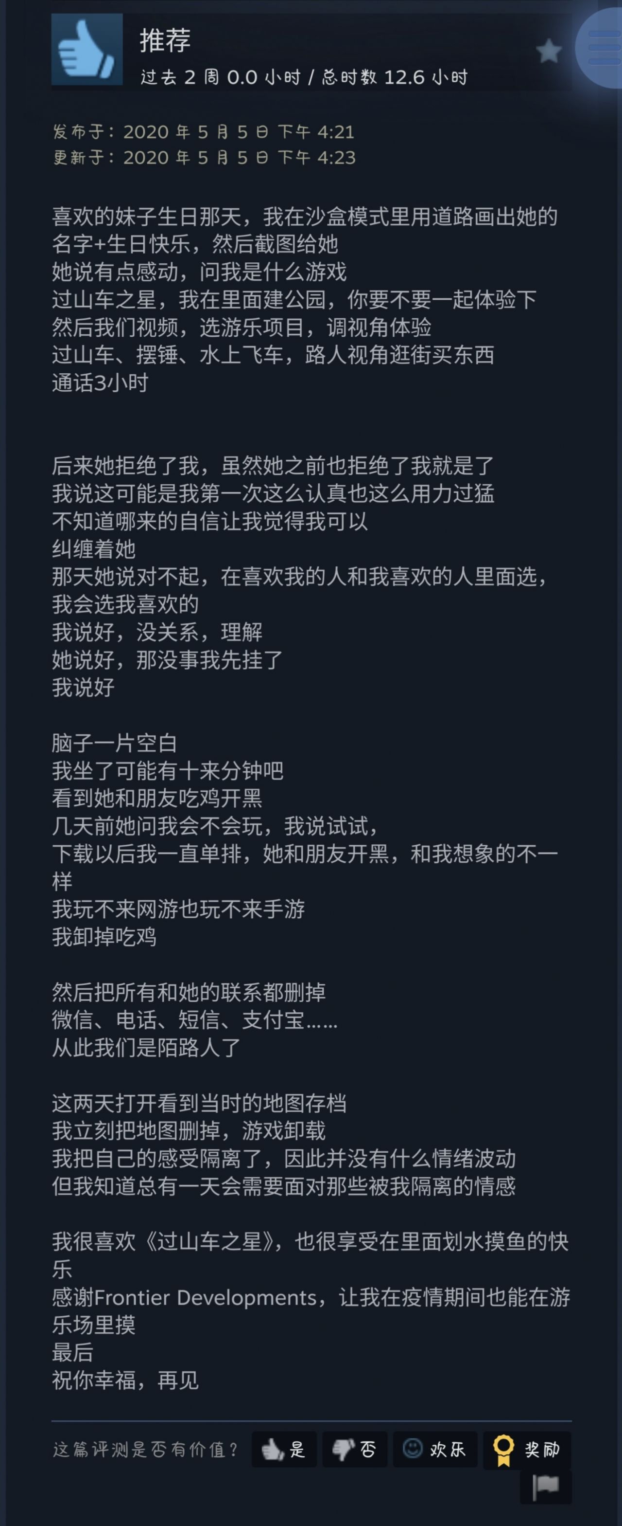 遊戲是我們放鬆的地方,也許在未來的某一天,當我們打開遊戲回到曾經的存檔中,你能再次想起那段都屬於你的東西,所以我覺得《過山車之星》這類遊戲非常好的一點就是他的自由度非常高,他可以讓你完成你想要做的一切,創作一個屬於你自己的樂園
