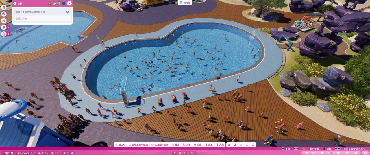 遊客反饋系統:遊戲加入了更智能的遊客反饋系統。遊客會根據設施的設計、體驗時間、等待時間等多種因素來評估自己的遊樂體驗,這使得玩家在設計時需要考慮更多細節。