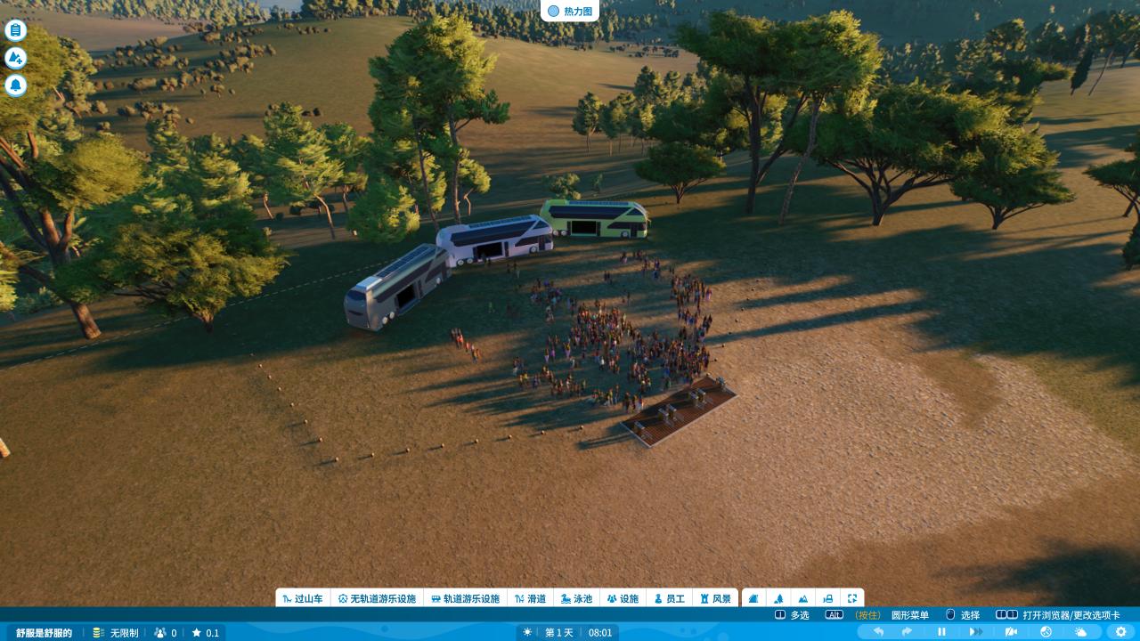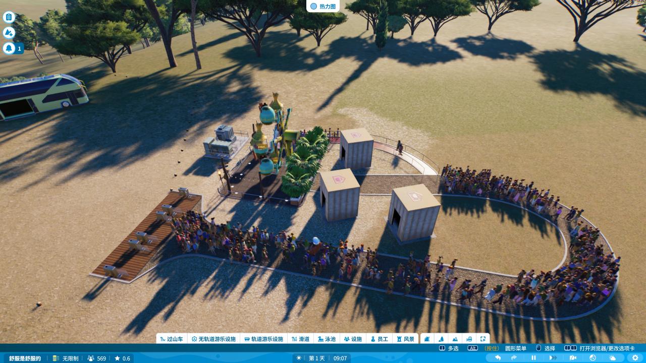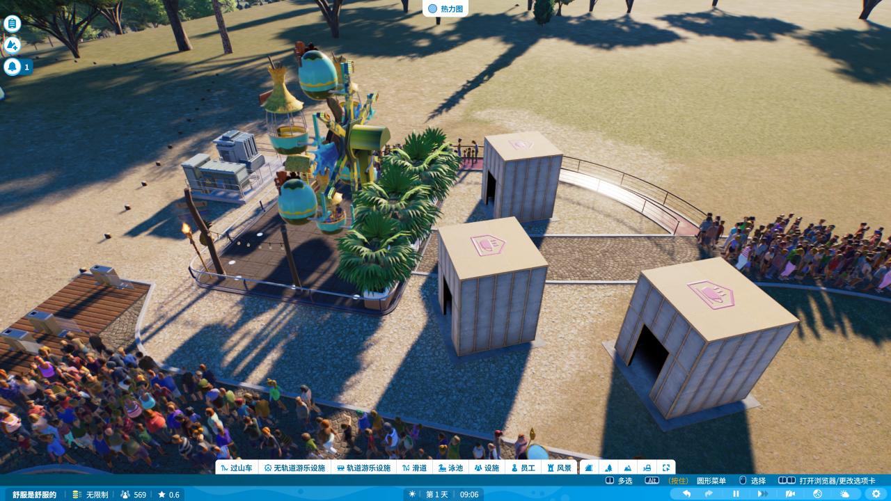自定義自由度大:沙盒模式的核心是自由建造,遊戲提供了上百種不同類型的設施、裝飾和植被,玩家可以隨心所欲地設計遊樂園的佈局。