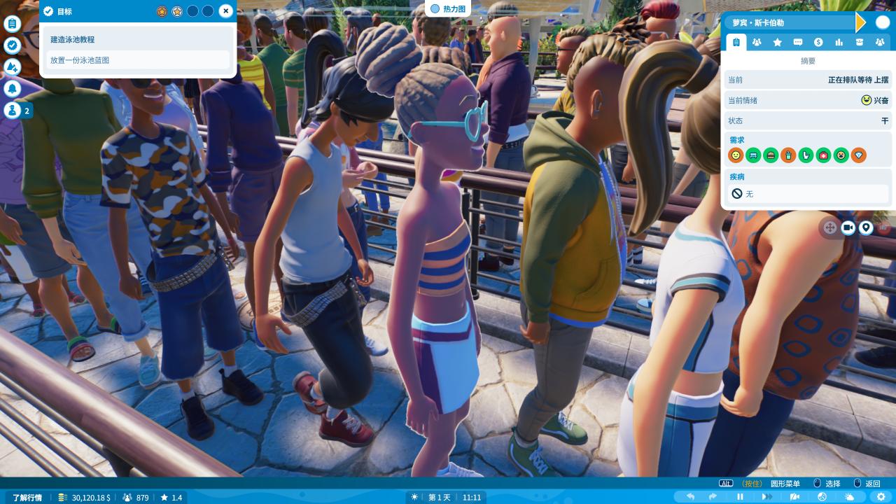 遊戲在細節上做得很好,例如在遊戲中,遊客和員工的都有表達心情的許多表情,能更好地表達不同情緒,甚至會影響他們在遊樂園中的行爲。例如我們在遊戲中可以直接點擊遊客,這時候遊戲的右上角會出現不同的心情,將畫面的拉進我們可以發現,心情和臉部的表情是相對應的,興奮開心的遊客臉上是洋溢着開心的,不開心的話臉上的表情看上去就並沒有那麼好了,可以說遊戲做的很細節了