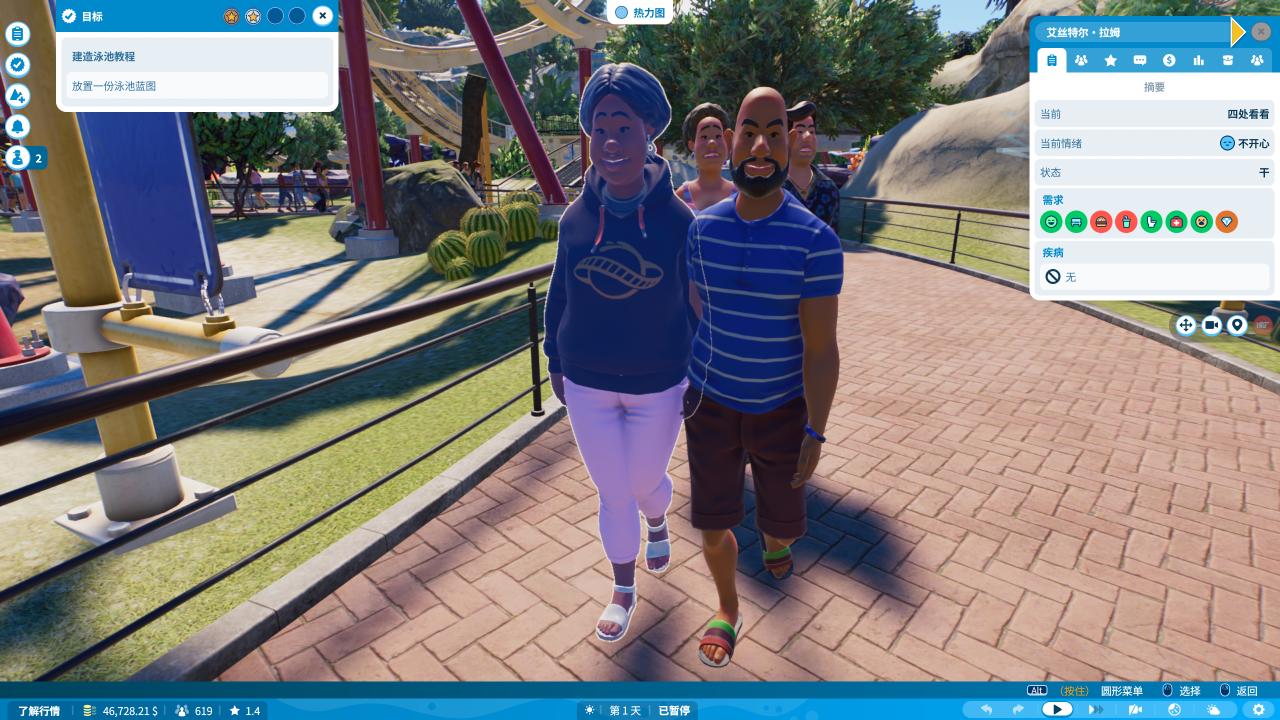 劇情模式提供了豐富的劇情任務,每個任務都有獨特的情境和目標,比如幫助一個老舊的遊樂園復興,或解決管理層面臨的難題。