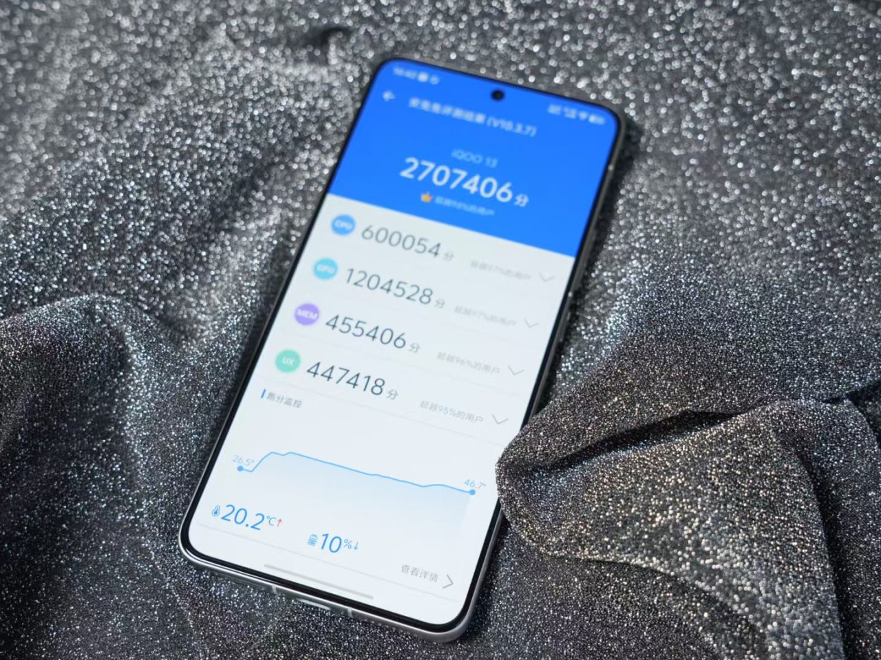 那麼光說不練怎麼行呢,於是日常安兔兔跑分不就來了。本次的iQOO13也是跑出了2707406的超高分數。