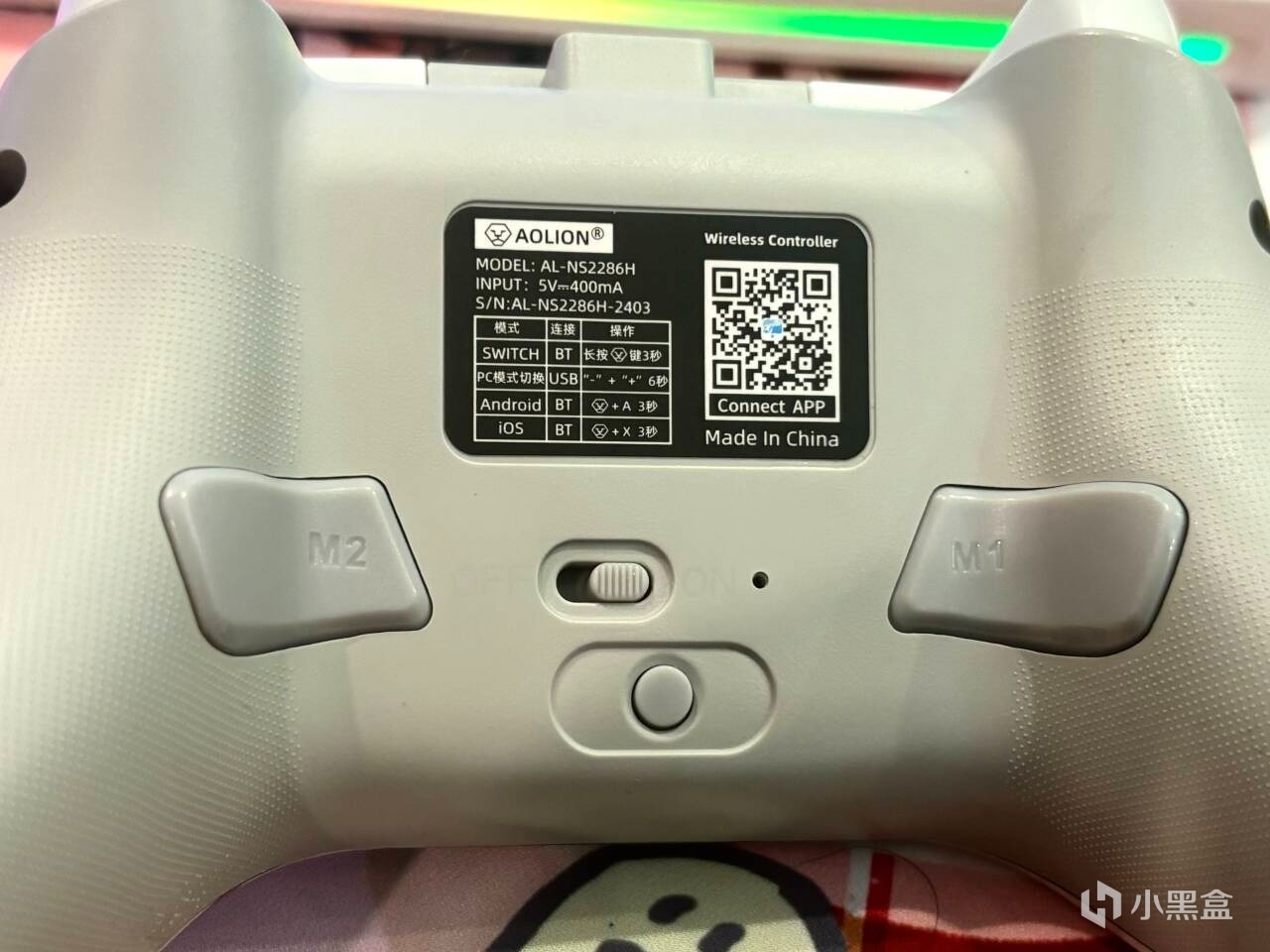 背部则是两个自定义宏按键,以及一个模式切换开关,这也是国产手柄有别于xbox手柄的最大特点,毕竟xbox手柄只有精英系列才会有自定义宏按键。
