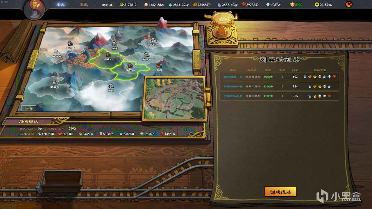 點擊創建線路後,需要選擇起始驛站以及使用哪個站臺,站臺需要用鐵路連接港口後才能選擇,否則會提示鐵路不通,選擇完畢後,會讓你選擇列車的車頭,一共有四種車頭,每種車頭的屬性不同,有的速度快但能攜帶的車廂數量少,有的速度慢但可以攜帶的車廂數量多,看個人喜歡選擇,選擇完車頭後,就要選擇攜帶多少節車廂以及運送驛站中收集到7種資源中的哪種,配置完後點擊發車,會提示更改車名,填好後點發車就成功創建一條列車線路了。
