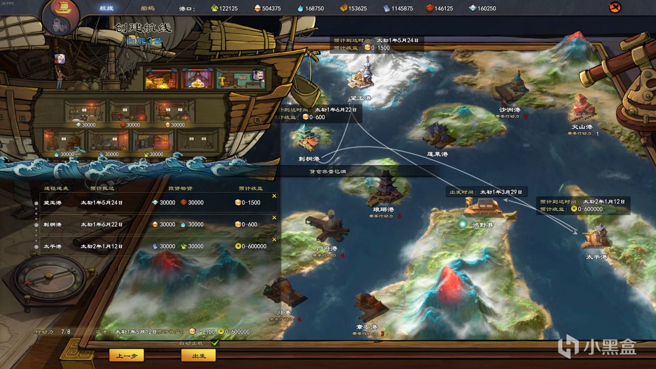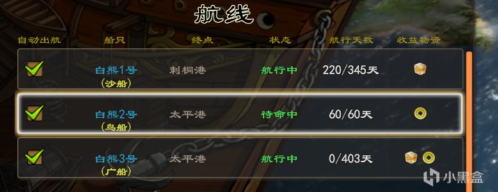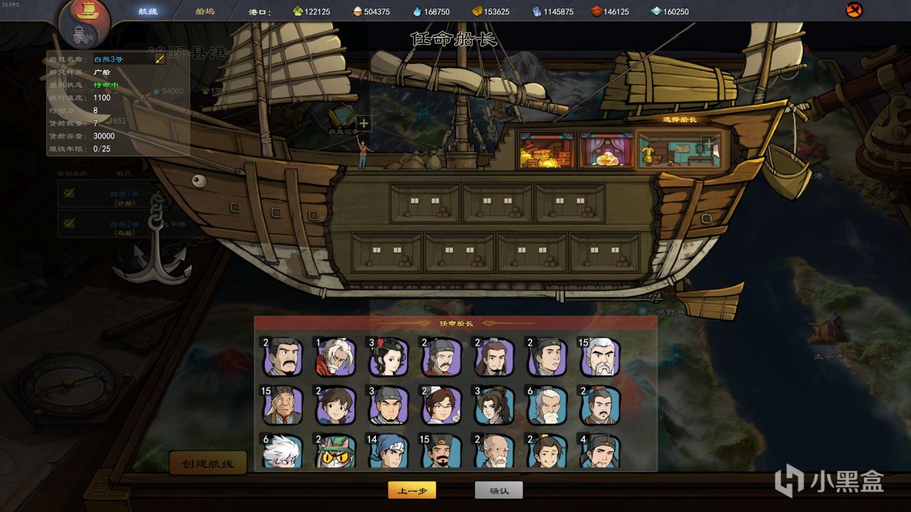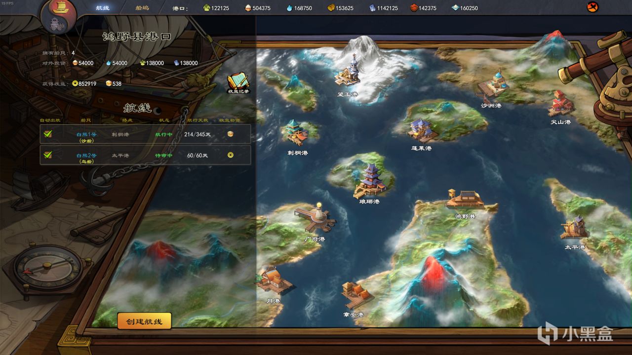 點擊創建航線後,會讓你選擇使用哪個船隻,然後是任命船長和大副,選擇帶有航海技能的謀士會更有利航行,選完之後就要選擇航行的路線了,地圖上有很多個港口可以選擇,每個港口換取的資源不同,以及需要的船隻行動力點數也不同,一次可以去好幾個港口,但是不能超過船隻行動力的上限,每種資源也有攜帶的上限,如果超過了上限,有些港口就算你行動力夠也不能選,只能去選擇其他資源攜帶沒到上限的港口,設置完路線後點出發,然後船隻命名,命名完後就成功創建一條新航線,航線可以設置自動出航,就不用手動點出發了。