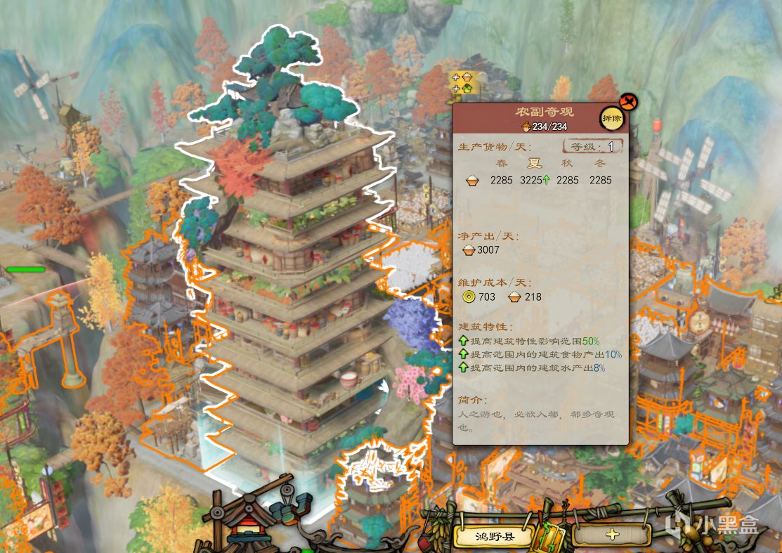 十一階城鎮可以解鎖農副奇觀,農副景觀可以提升一定範圍內食物和水的產量,同時自身也能產出大量的食物。